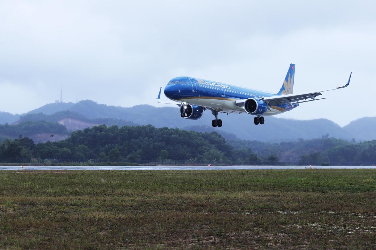 Máy bay của Vietnam Airlines hạ cánh tại Cảng Hàng không quốc tế Vân Đồn. Ảnh: Đỗ Phương