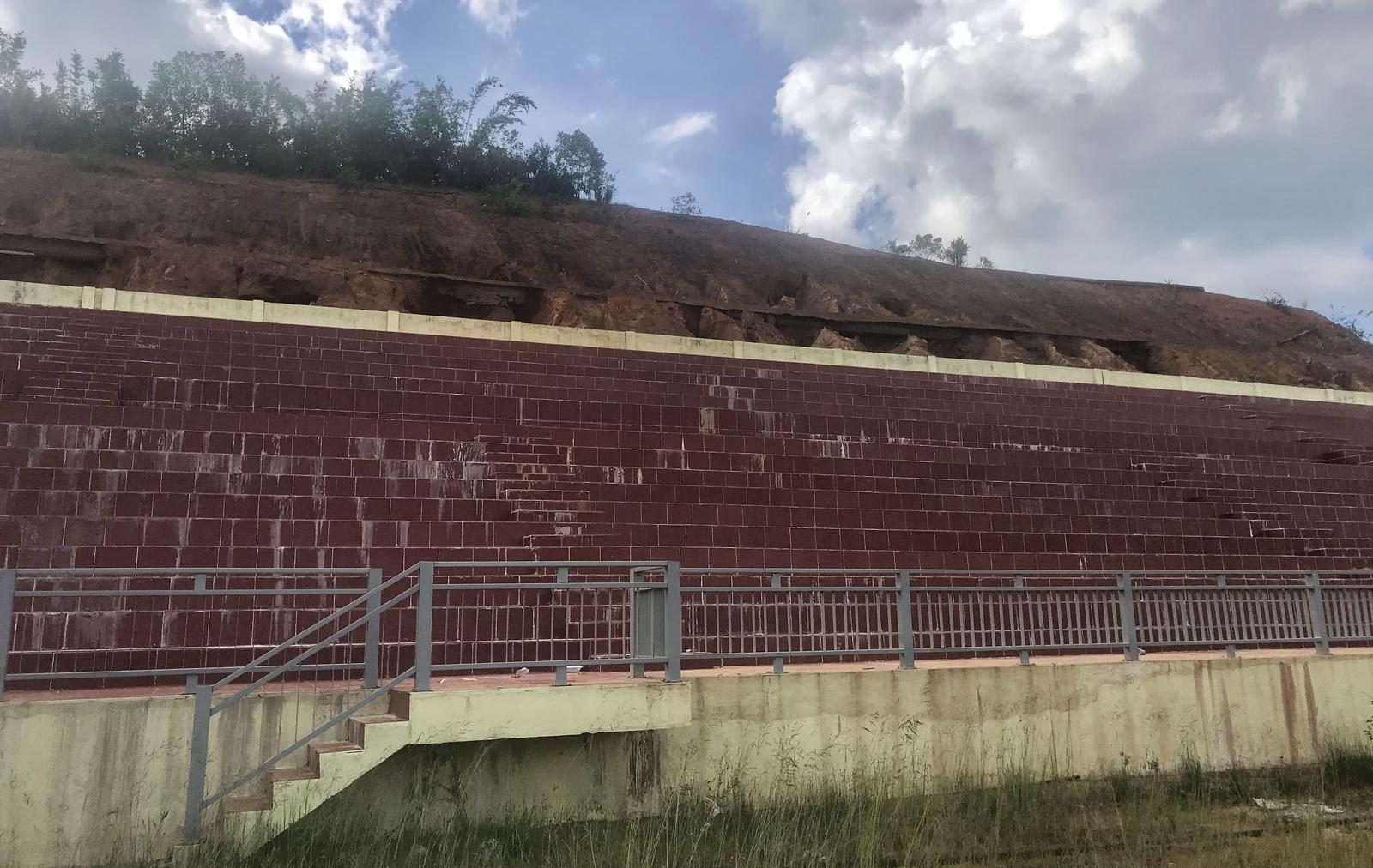 Nhiều hạng mục công trình như: Khuôn viên xung quanh khán đài, khu vực kè hoa taluy, mương thoát nước cũng bị sạt lở, hư hỏng nặng; chỉ có hạng mục nhà làm việc là không bị ảnh hưởng và đến nay chưa khắc phục xong các hạng mục bị hư hỏng do mưa lũ gây ra.