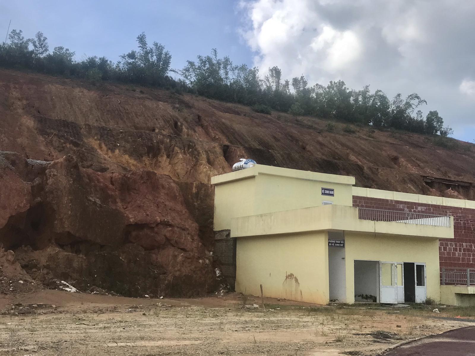 Về biện pháp khắc phục, theo ông Hồ Hiệp, sau sự cố sạt lở, BQL các DA đầu tư xây dựng - phát triển quỹ đất Đông Giang đã phối hợp với đơn vị tư vấn xây dựng khảo sát, kiểm tra lại toàn bộ khu vực đồi xung quanh, có phương án cụ thể như: Hạ cao trình đỉnh mái taluy tới cao trình khoảng 508 - 516,8m có độ dốc và đổ bê tông gia cố phần tạo độ dốc, bố trí các hệ thống mương thoát nước trên mặt bằng để gom nước về các dốc nước tại vị trí tường chắn bê tông sau nhà vệ sinh.