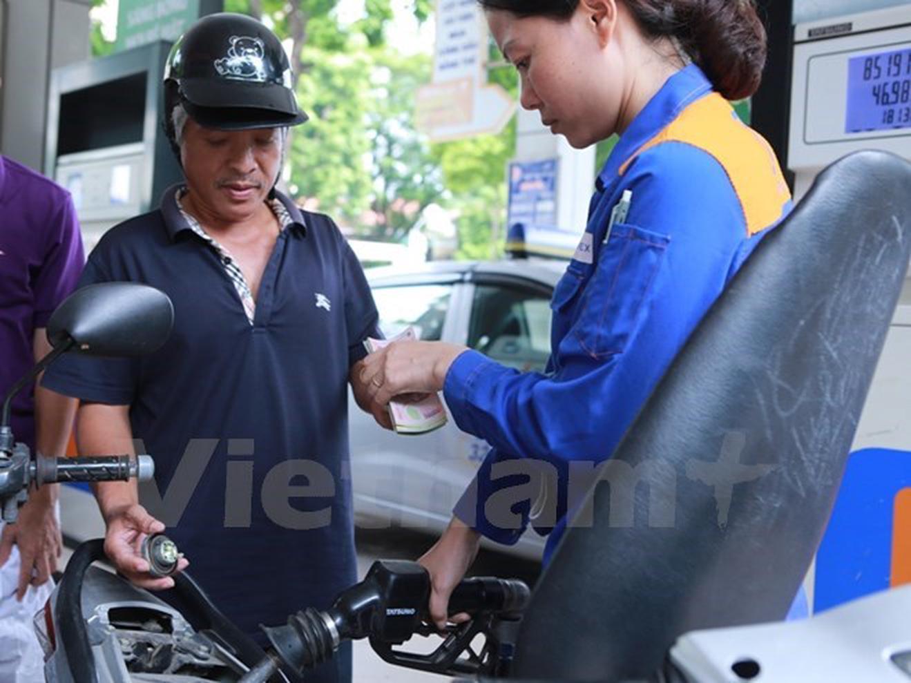 Nhân viên Petrolimex đang bán xăng cho khách hàng. (Ảnh: Đức Duy/Vietnam+)