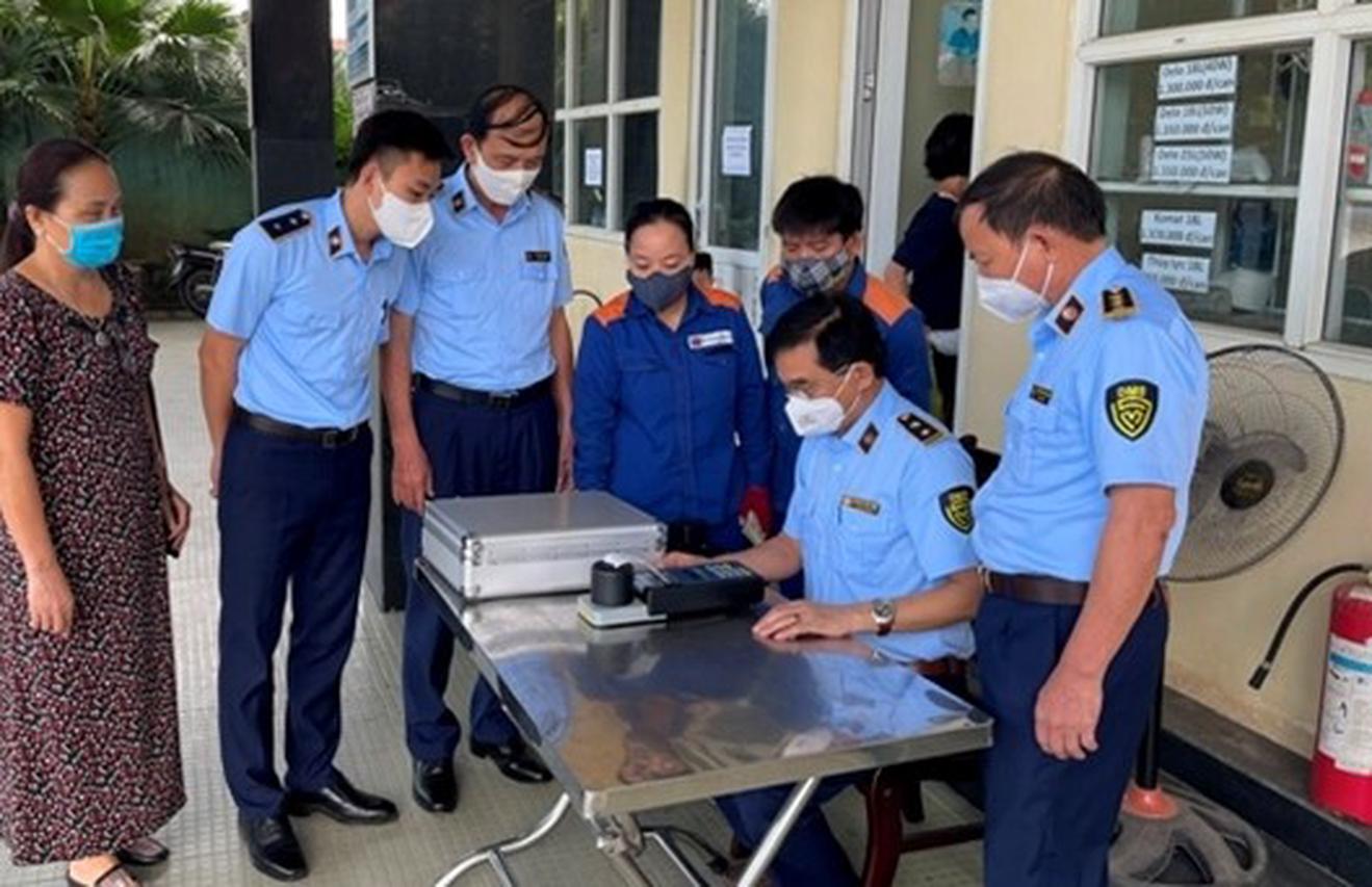 Lực lượng quản lý thị trường Nghệ An kiểm tra hoạt động kinh doanh xăng dầu. Ảnh: XT
