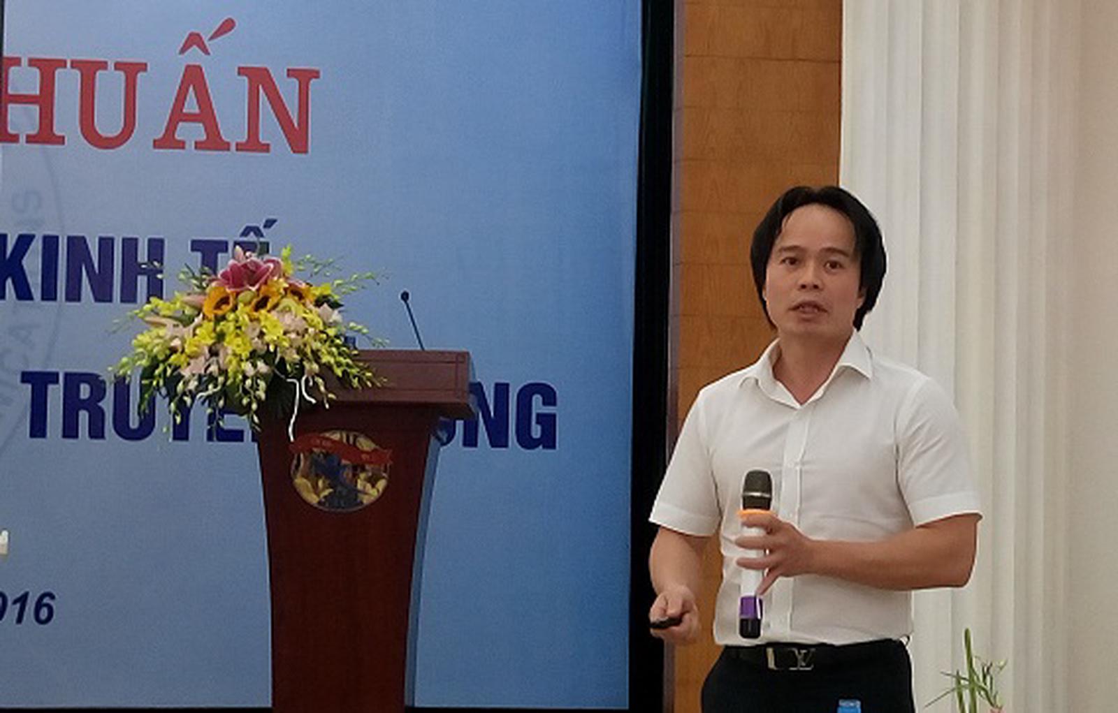 Ông Ngô Chung Khanh trình bày tại Hội nghị về "Định hướng hội nhập quốc tế về kinh tế và TPP đối với Việt Nam". Ảnh: Trung Hà