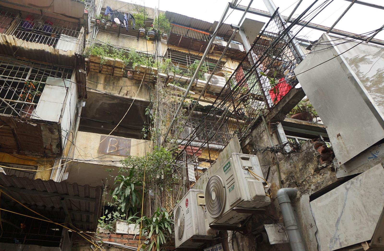 Khu tập thể Ngọc Khánh đã được xây dựng từ rất lâu đời, giờ đây đã trở nên quá tải và xuống cấp nghiêm trọng. Ảnh: HH