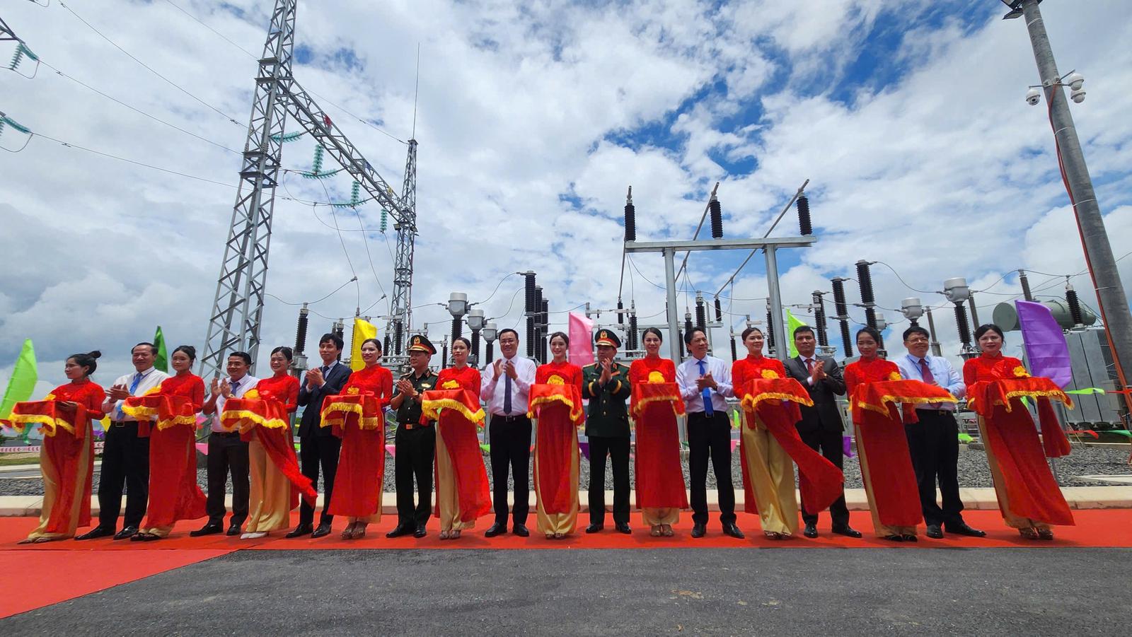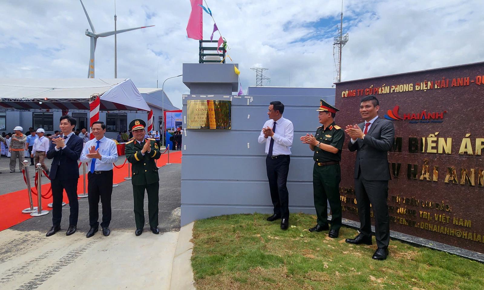 Cùng với hơn 250 dự án, công trình trọng điểm trên cả nước, các đại biểu chính thức cắt băng khánh thành dự án Nhà máy điện gió Hải Anh. Ảnh: Minh Tân