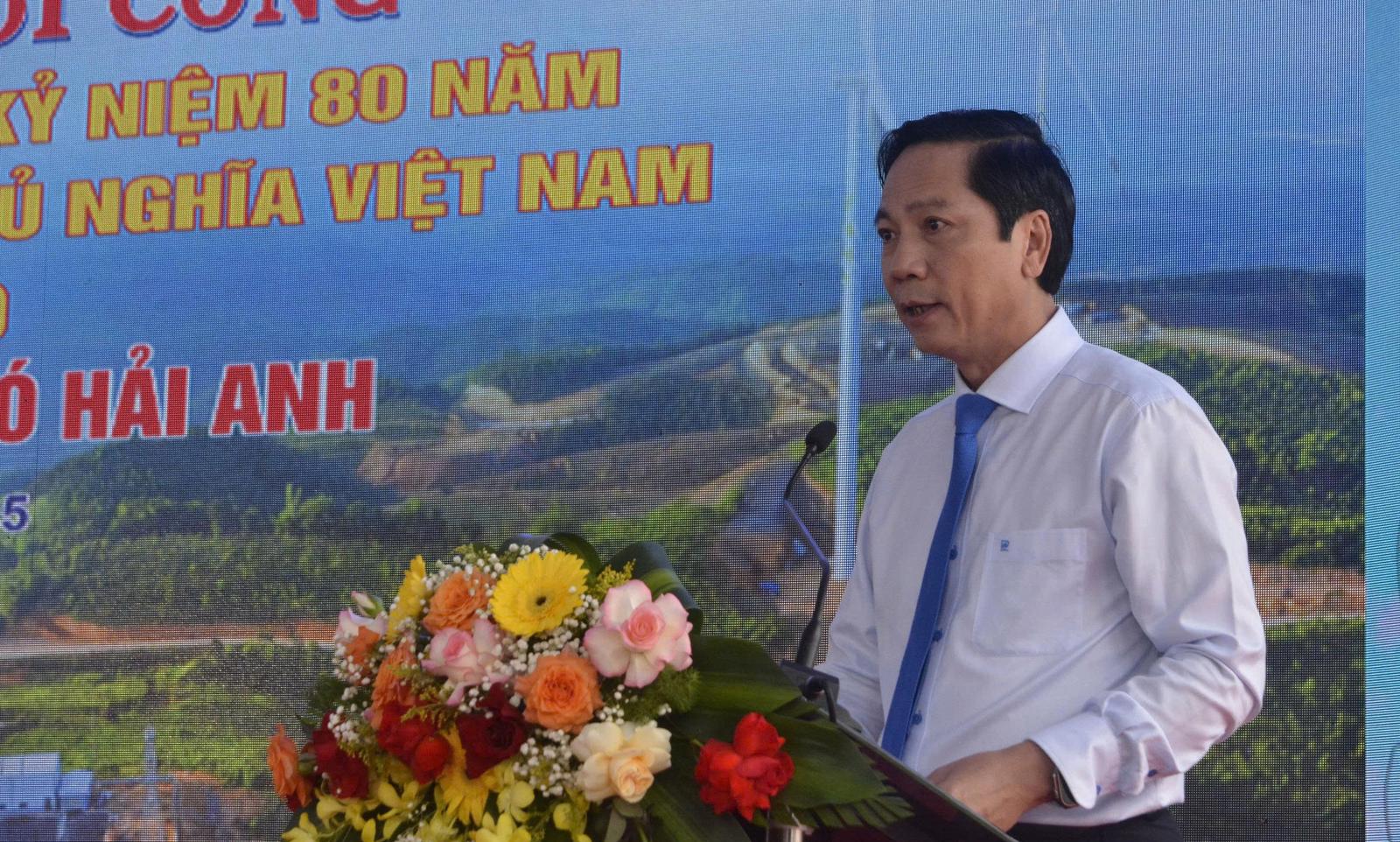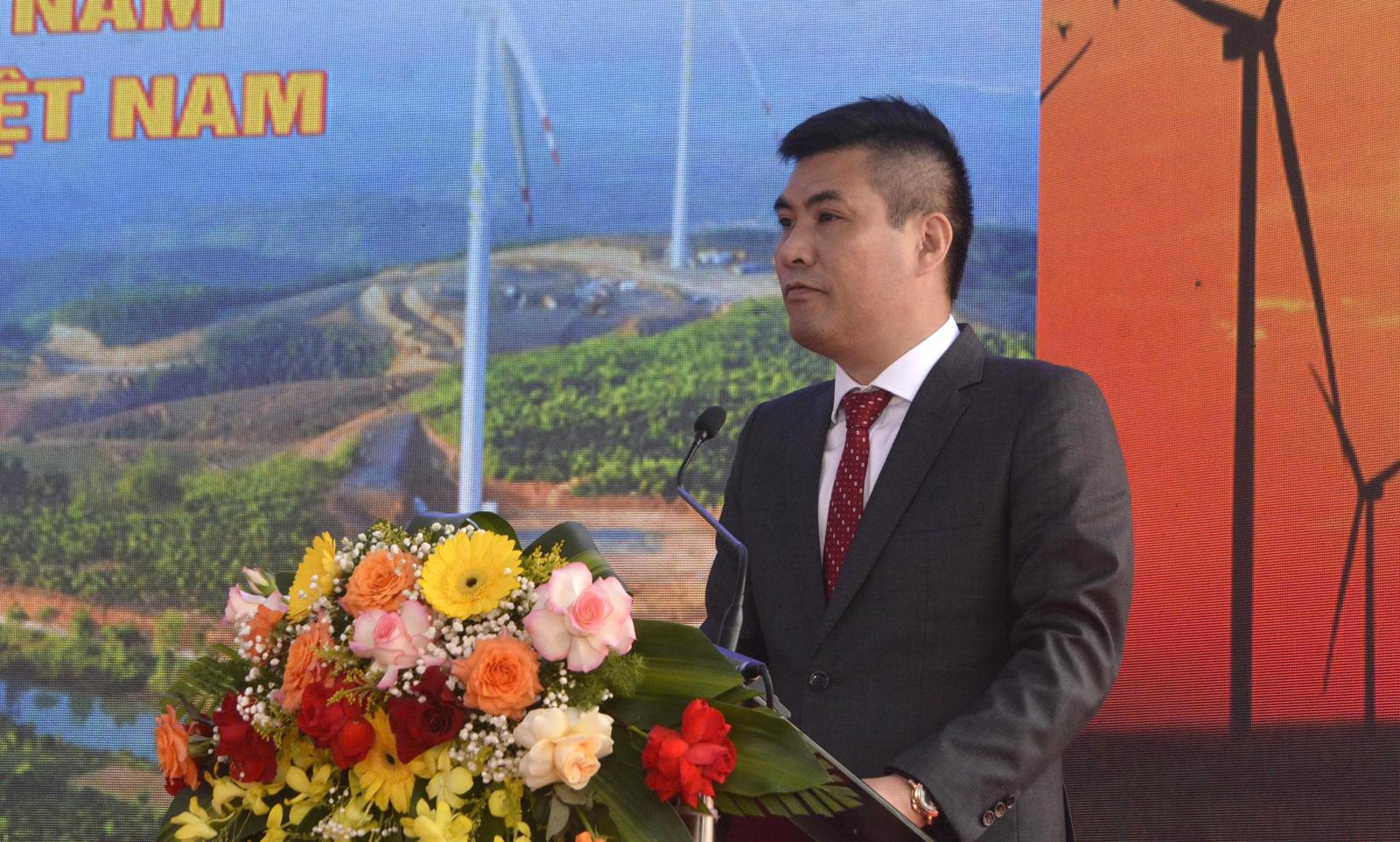 Ông Quản Duy Hải, Giám đốc Công ty cổ phần Phong điện Hải Anh phát biểu tại lễ khánh thành. Ảnh: Minh Tân