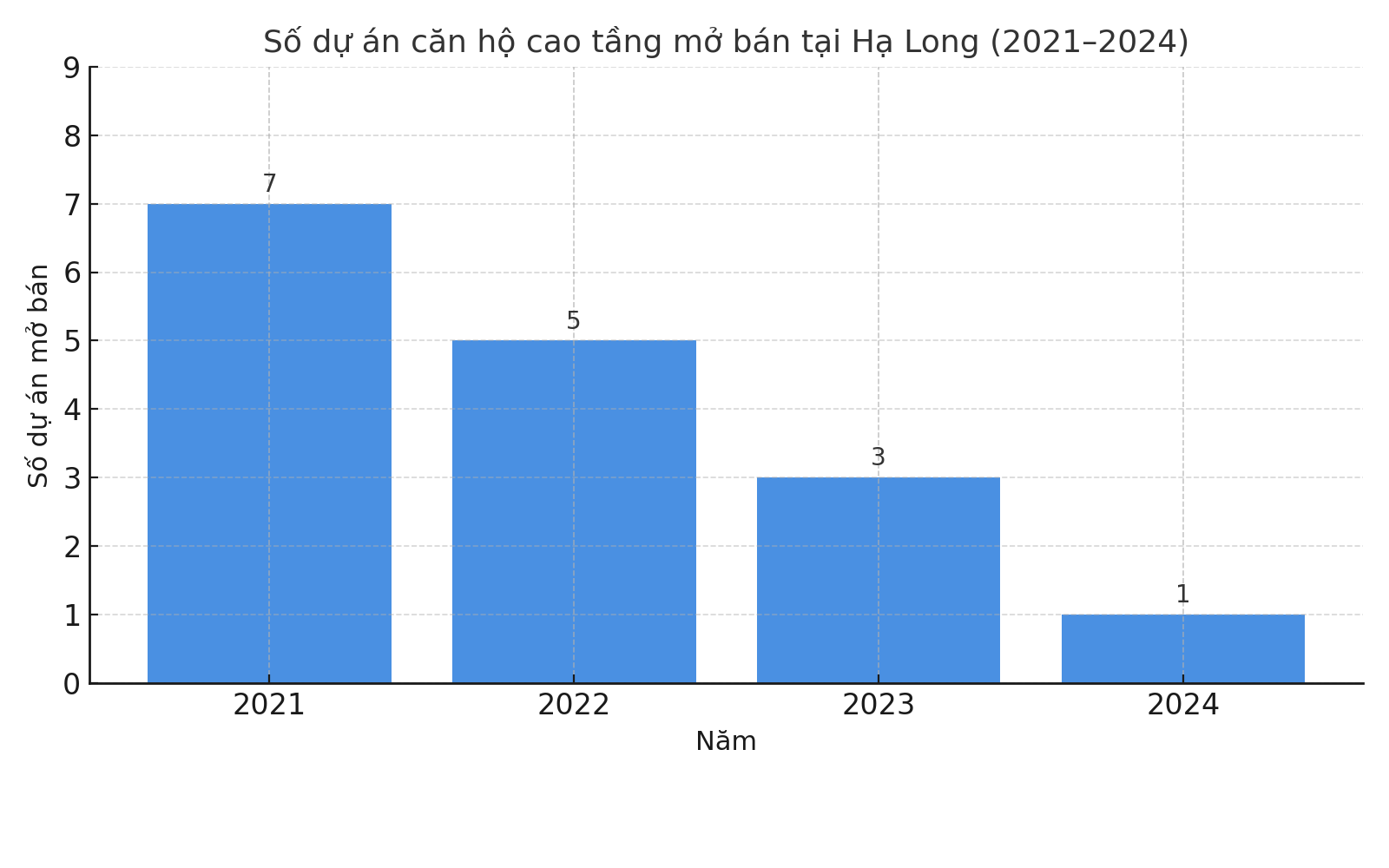 Xu hướng giảm mạnh nguồn cung căn hộ cao tầng tại Hạ Long từ năm 2021 đến 2024. Ảnh: Quang Dân