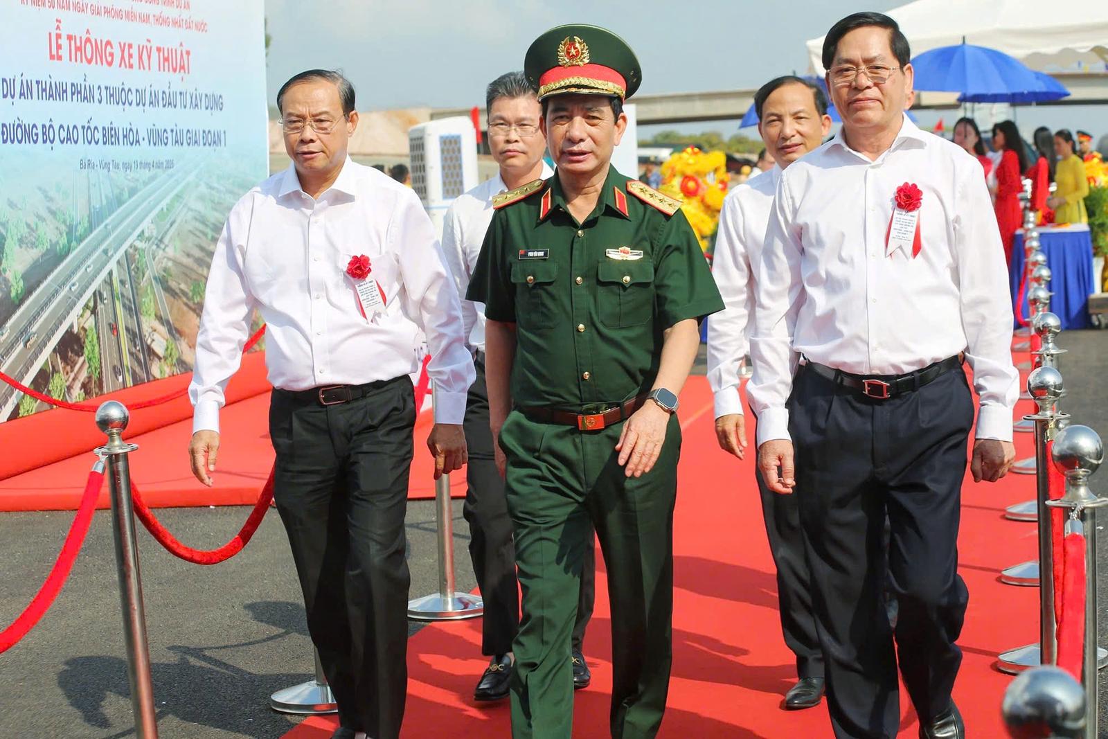 Đại tướng Phan Văn Giang - Ủy viên Bộ Chính trị, Bộ trưởng Bộ Quốc phòng cùng lãnh đạo tỉnh BR-VT tham dự lễ thông xe. Ảnh: A.X