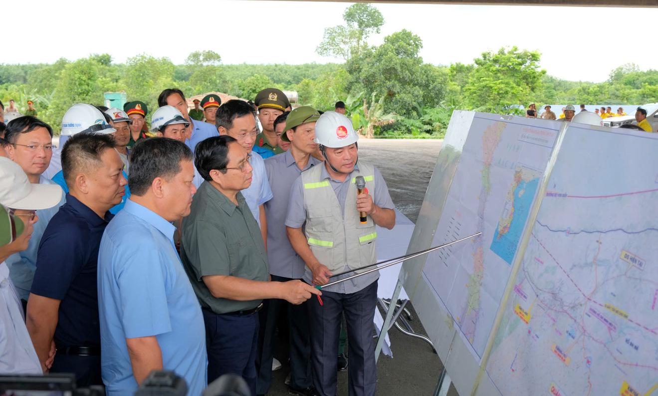 Kiểm tra tại hiện trường, Thủ tướng Phạm Minh Chính biểu dương nỗ lực của các cơ quan, địa phương liên quan, đồng thời yêu cầu các đơn vị thi công dồn toàn lực để rút ngắn thời gian, triển khai phương án “3 ca, 4 kíp”, làm cả ngày lẫn đêm, phấn đấu đến ngày 19/8/2025 sẽ thông xe kỹ thuật tuyến cao tốc quan trọng này. Người đứng đầu Chính phủ nhấn mạnh, tuyến cao tốc hoàn thành sớm không chỉ giải quyết nhu cầu đi lại an toàn, rút ngắn thời gian vận chuyển mà còn mở ra cơ hội thu hút đầu tư, thúc đẩy phát triển dọc hành lang kinh tế Bắc – Nam.