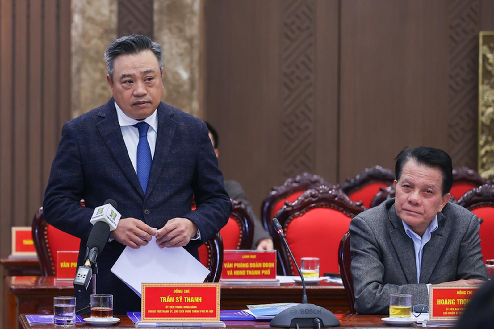 Chủ tịch UBND thành phố Hà Nội Trần Sỹ Thanh phát biểu tại hội nghị. Ảnh: Nhật Bắc