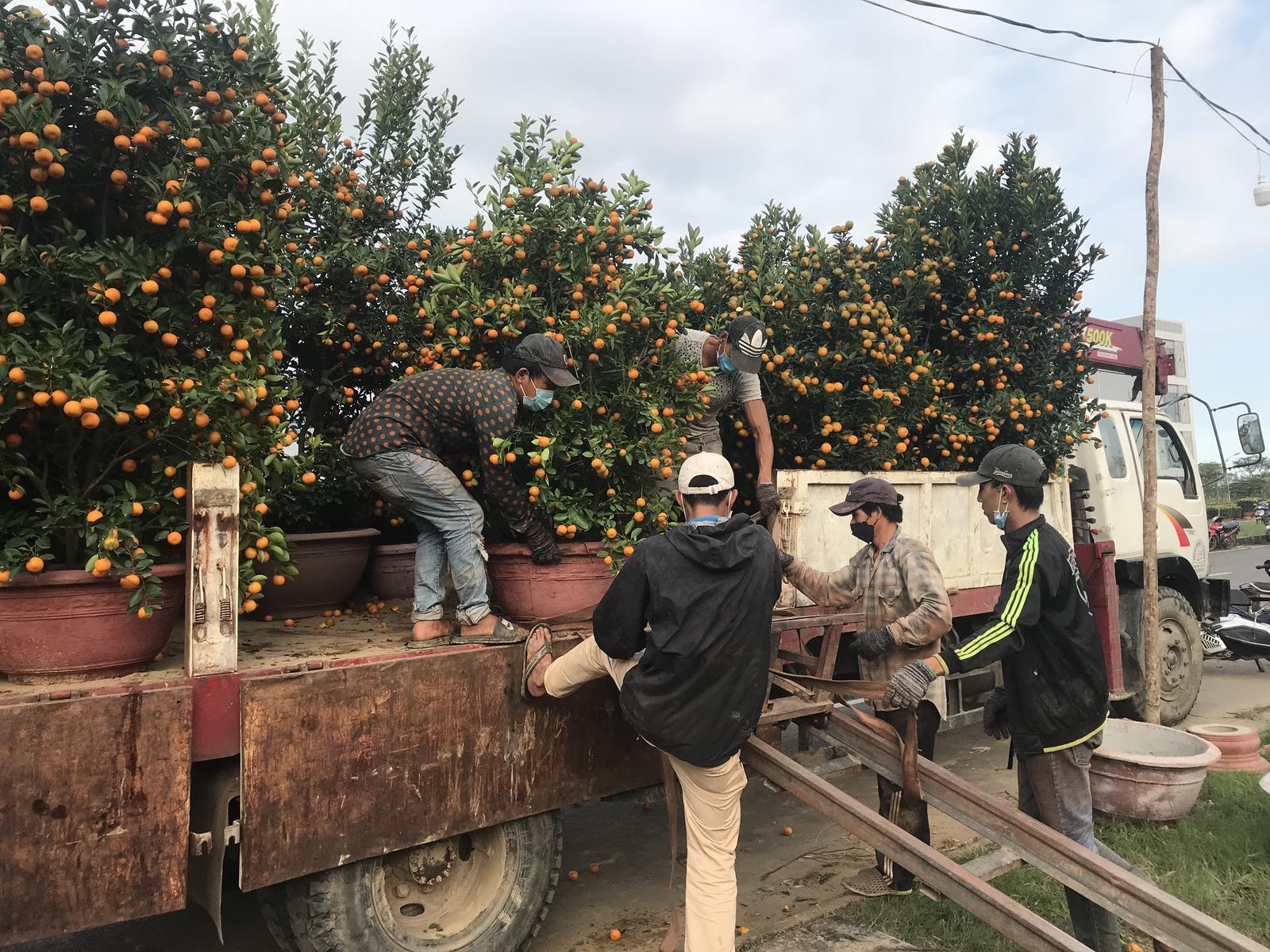 Quất cảnh được linh hoạt điều động đến nhiều nơi, nhưng sức mua khá giảm. Ảnh: T.P