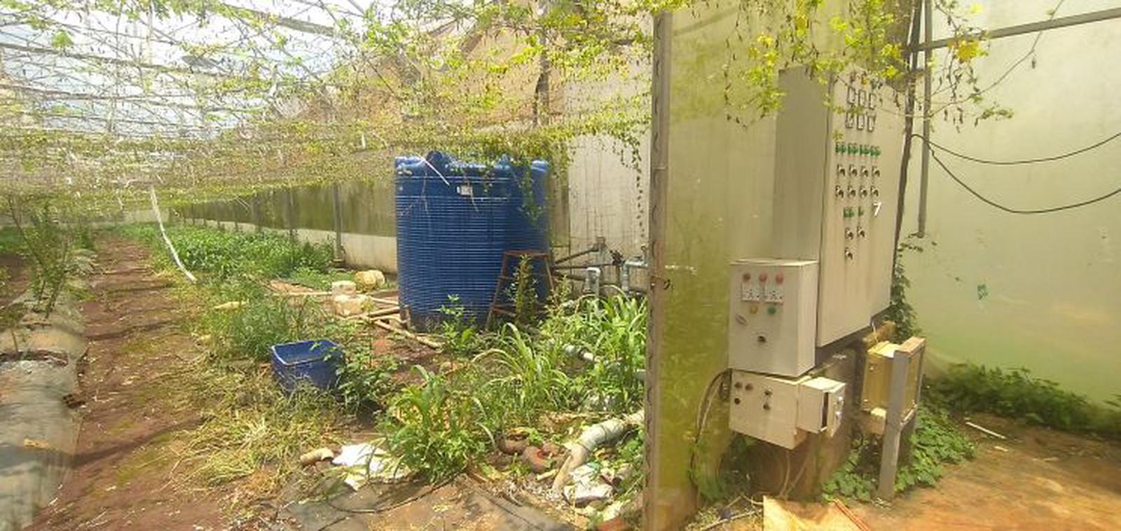Hệ thống tưới nước tiết kiệm hư hỏng nặng, cỏ dại mọc um tùm. Ảnh: Chí Cường
