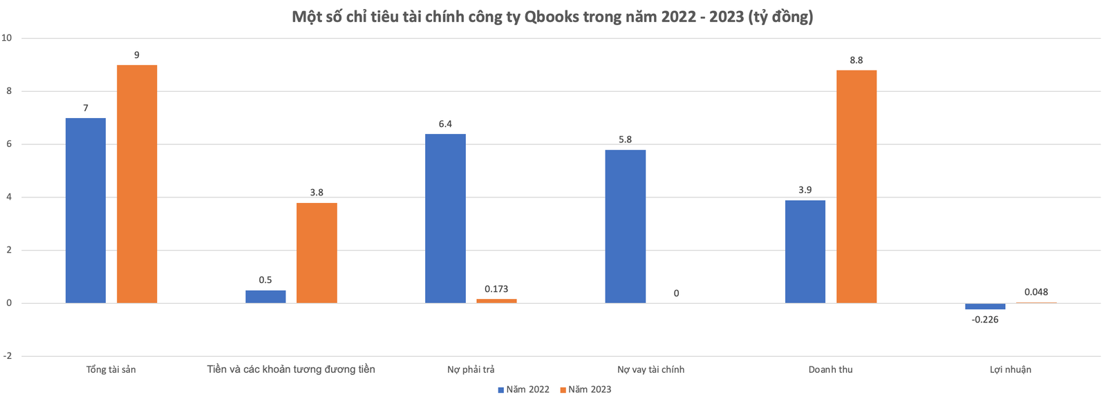 Kết thúc năm 2023, doanh thu Công ty Qbooks đạt gần 9 tỷ đồng, cao gấp 2,2 lần so với cùng kỳ năm ngoái. Đồng thời doanh nghiệp báo lãi sau thuế gần 50 triệu đồng, trong khi năm trước đó lỗ sau thuế hơn 250 triệu đồng.