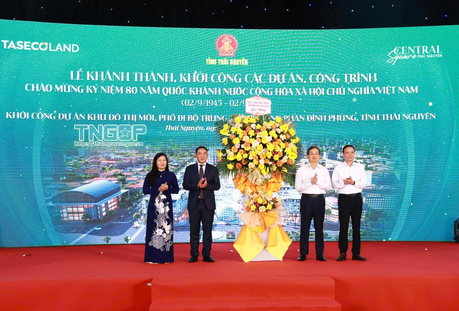 6 công trình, dự án được khánh thành, khởi công gồm: 1. Dự án đầu tư xây dựng và kinh doanh kết cấu hạ tầng Khu công nghiệp Yên Bình. Tổng vốn đầu tư là 3.650 tỷ đồng; 2. Dự án Tuyến đường liên kết, kết nối các tỉnh Thái Nguyên, Bắc Ninh và Phú Thọ, giai đoạn 1. Tổng vốn đầu tư là 4.204 tỷ đồng; 3. Dự án Khu đô thị mới, phố đi bộ trung tâm phường Phan Đình Phùng. Tổng vốn đầu tư là 2.452,087 tỷ đồng; 4. Tổ hợp Khu vui chơi giải trí, nhà ở và sân golf Tân Thái hồ Núi Cốc, giai đoạn 1. Tổng vốn đầu tư là 2.500 tỷ đồng; 5. Công trình Trung tâm hồi sức tích cực chống độc thuộc Dự án Đầu tư xây dựng Trung tâm hồi sức tích cực chống độc và mua sắm thiết bị y tế Bệnh viện Trung ương Thái Nguyên. Tổng vốn đầu tư là 152,932 tỷ đồng; 6. Dự án Khu nhà ở xã hội phường Bách Quang. Tổng vốn đầu tư là 386,85 tỷ đồng.