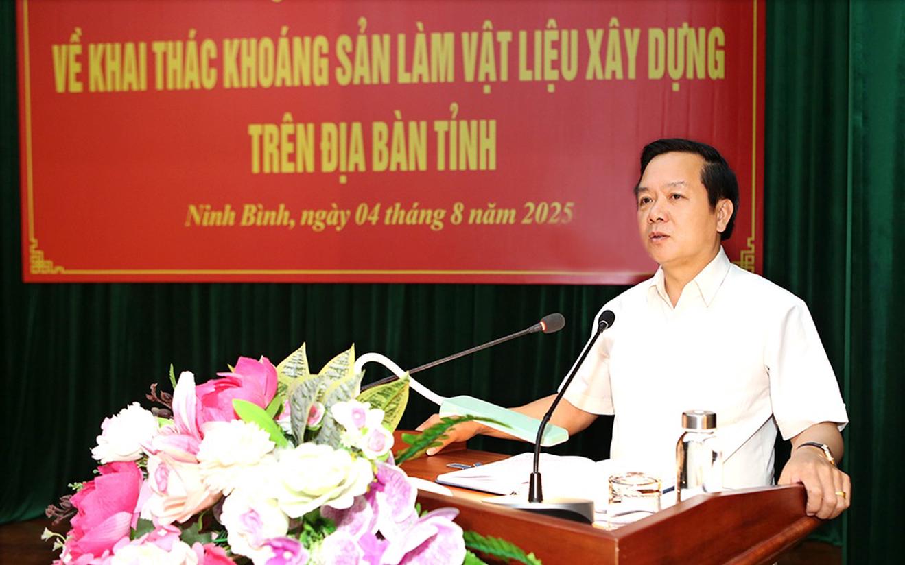 (Thanh tra) - Ngày 4/8/2025, tại hội nghị về khai thác khoáng sản làm vật liệu xây dựng trên địa bàn, Chủ tịch UBND tỉnh Ninh Bình chỉ đạo xem xét, tính toán phương án thanh tra thu hồi lại mỏ, xét vào diện dự án chậm tiến độ, không thực hiện đúng theo trình tự quy định pháp luật.