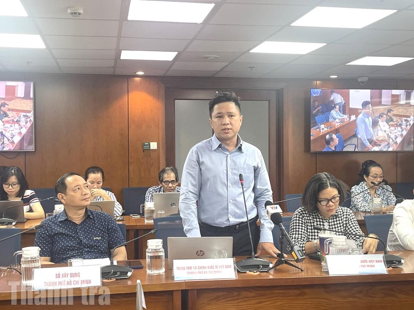 Đại diện Trung tâm Tài chính quốc tế Việt Nam tại TPHCM cung cấp thông tin tại buổi họp báo. Ảnh: Thu Huyền