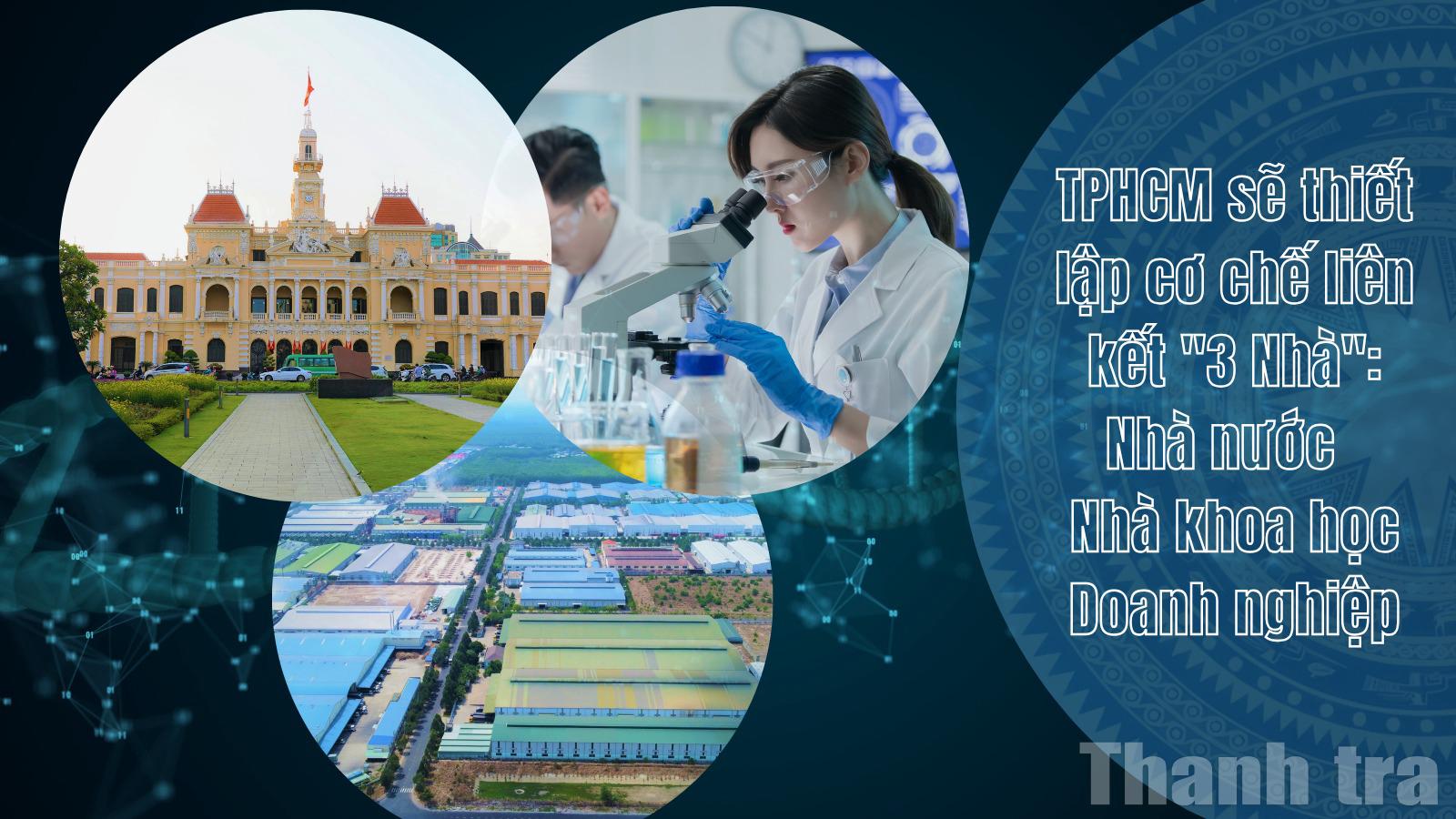 TPHCM sẽ thiết lập cơ chế liên kết "3 Nhà" (Nhà nước - Nhà khoa học - Doanh nghiệp) vận hành thực chất, gắn nghiên cứu với nhu cầu thị trường và nâng cao khả năng thương mại hóa. Đồ họa: Chu Tuấn