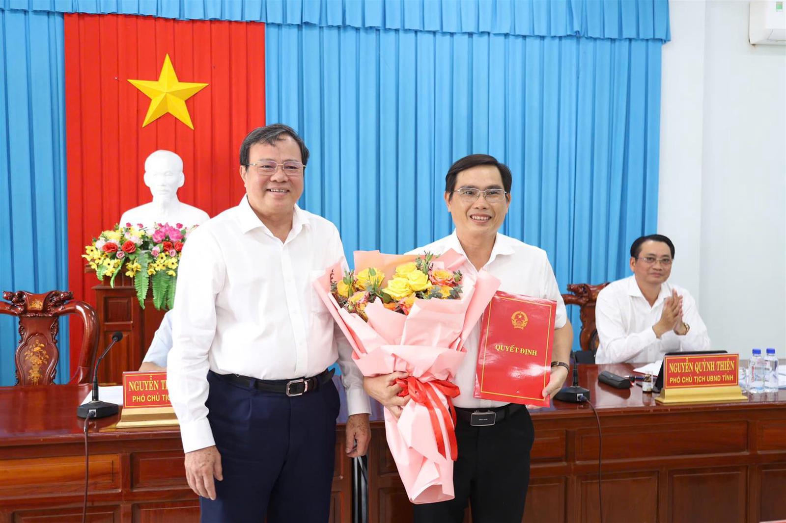 Chủ tịch UBND tỉnh Lê Văn Hẳn trao quyết định cho ông Lê Thanh Bình, Phó Chánh Văn phòng UBND tỉnh. Ảnh: Ngân Linh