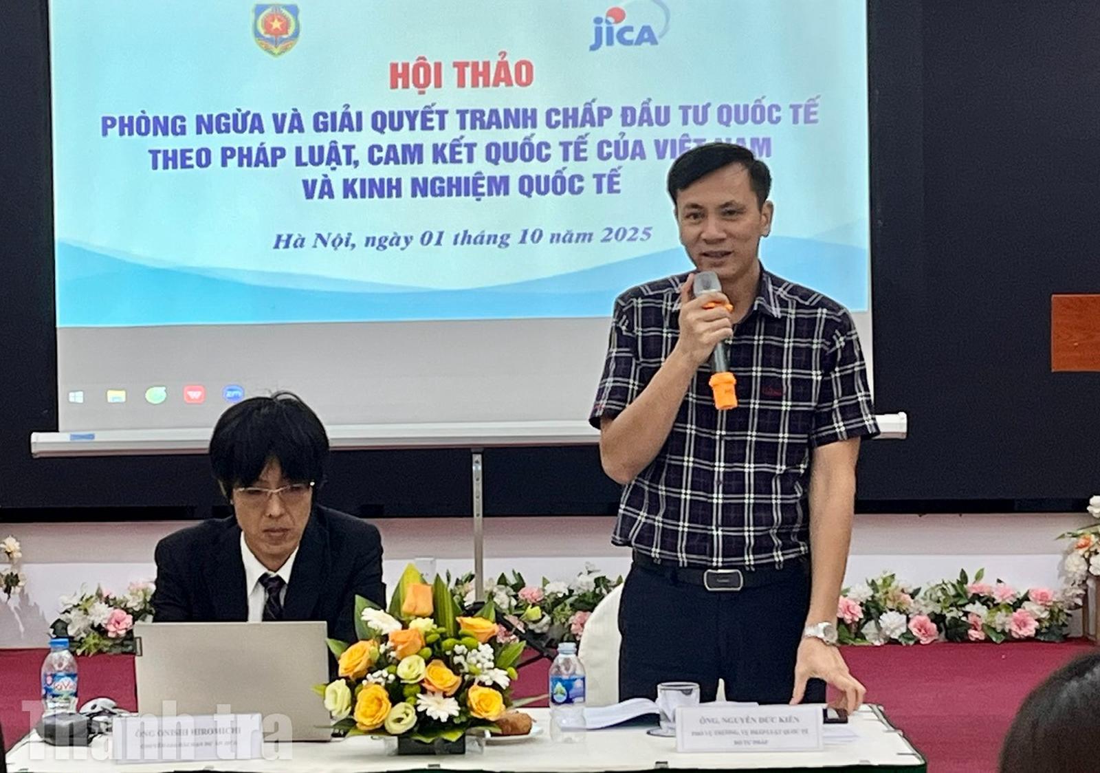 Kết luận hội thảo, ông Nguyễn Đức Kiên, Phó Vụ trưởng Vụ Pháp luật quốc tế, Bộ Tư pháp gửi lời cảm ơn đến các diễn giả, chuyên gia đến từ Bộ Tài chính - những người trực tiếp tham gia đàm phán và xử lý tranh chấp quốc tế thời gian qua; Đại học Luật Hà Nội và Vụ Pháp luật quốc tế.