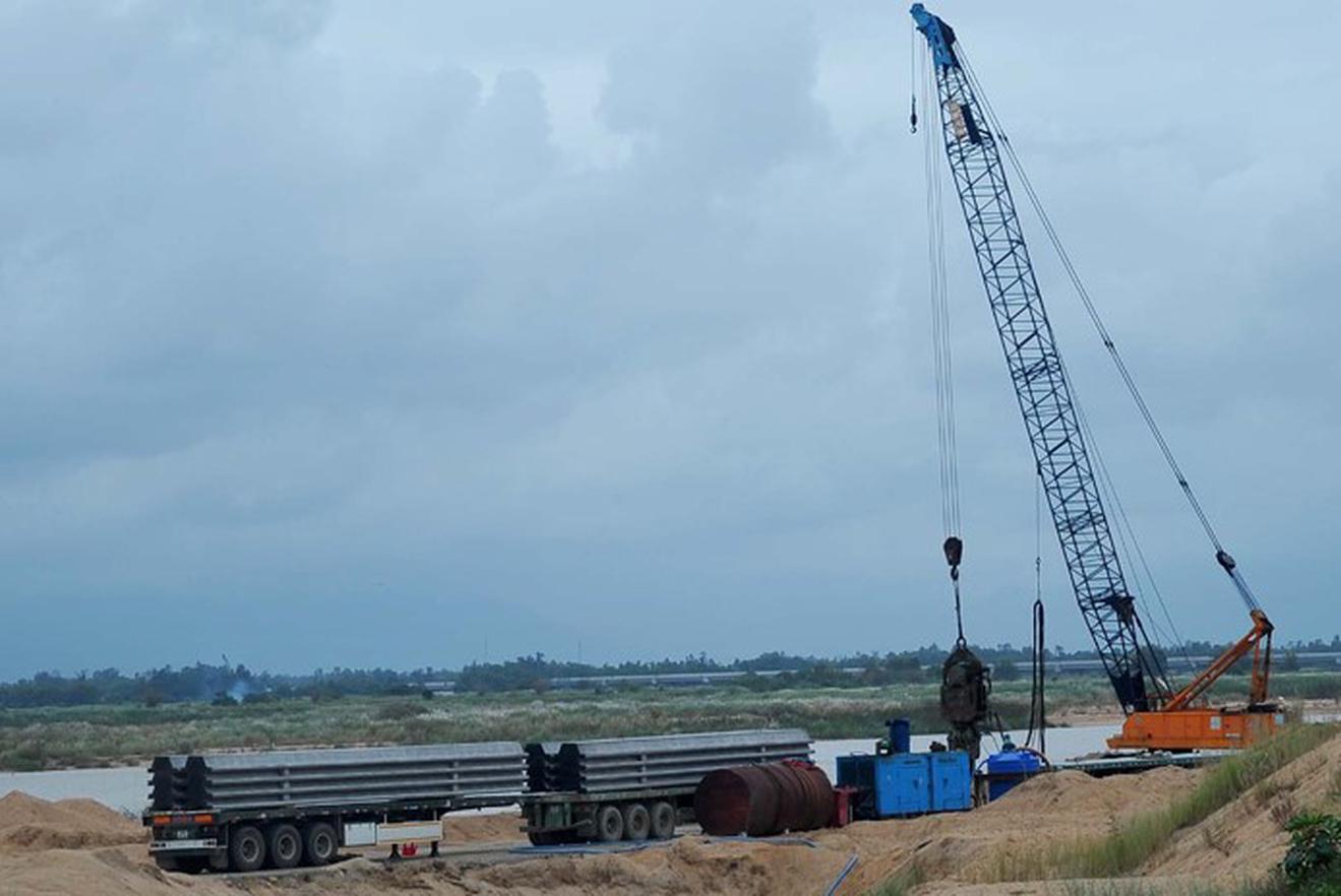 Công trình kè chống sạt lở bờ sông Ba tại thôn Vĩnh Phú, xã Hòa An, huyện Phú Hòa đang thi công. Ảnh: Anh Ngọc