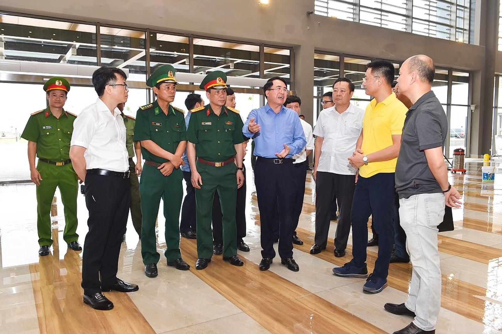 Phó Chủ tịch UBND thành phố Hải Phòng Lê Khắc Nam cùng lãnh đạo Tập đoàn Sun Group kiểm tra tại khu vực Nhà ga cáp treo. Ảnh: ĐN