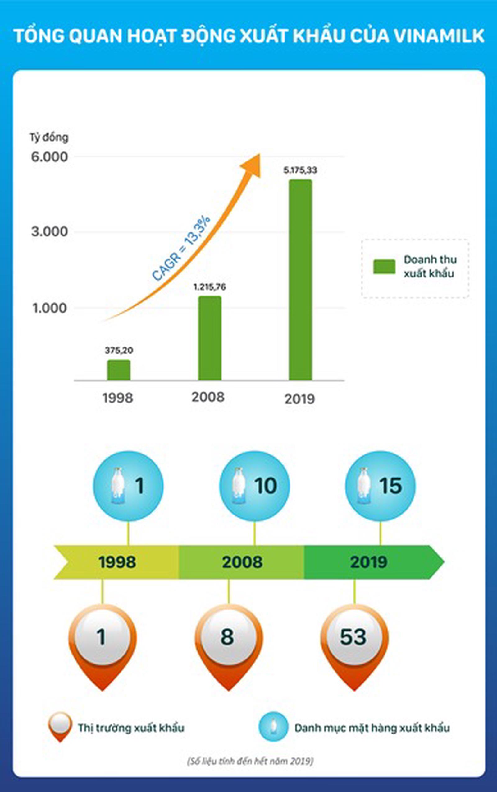 Quả thật cách đi này đã giúp Vinamilk không chỉ đi chắc mà còn đi nhanh trong hơn 20 năm qua. Sữa bột hiện là sản phẩm đóng góp lớn nhất trong doanh thu xuất khẩu của Vinamilk. Tổng kim ngạch xuất khẩu tính đến nay đã đạt 2,2 tỷ USD, với 54 quốc gia, vùng lãnh thổ mà thương hiệu này đã đặt chân đến.