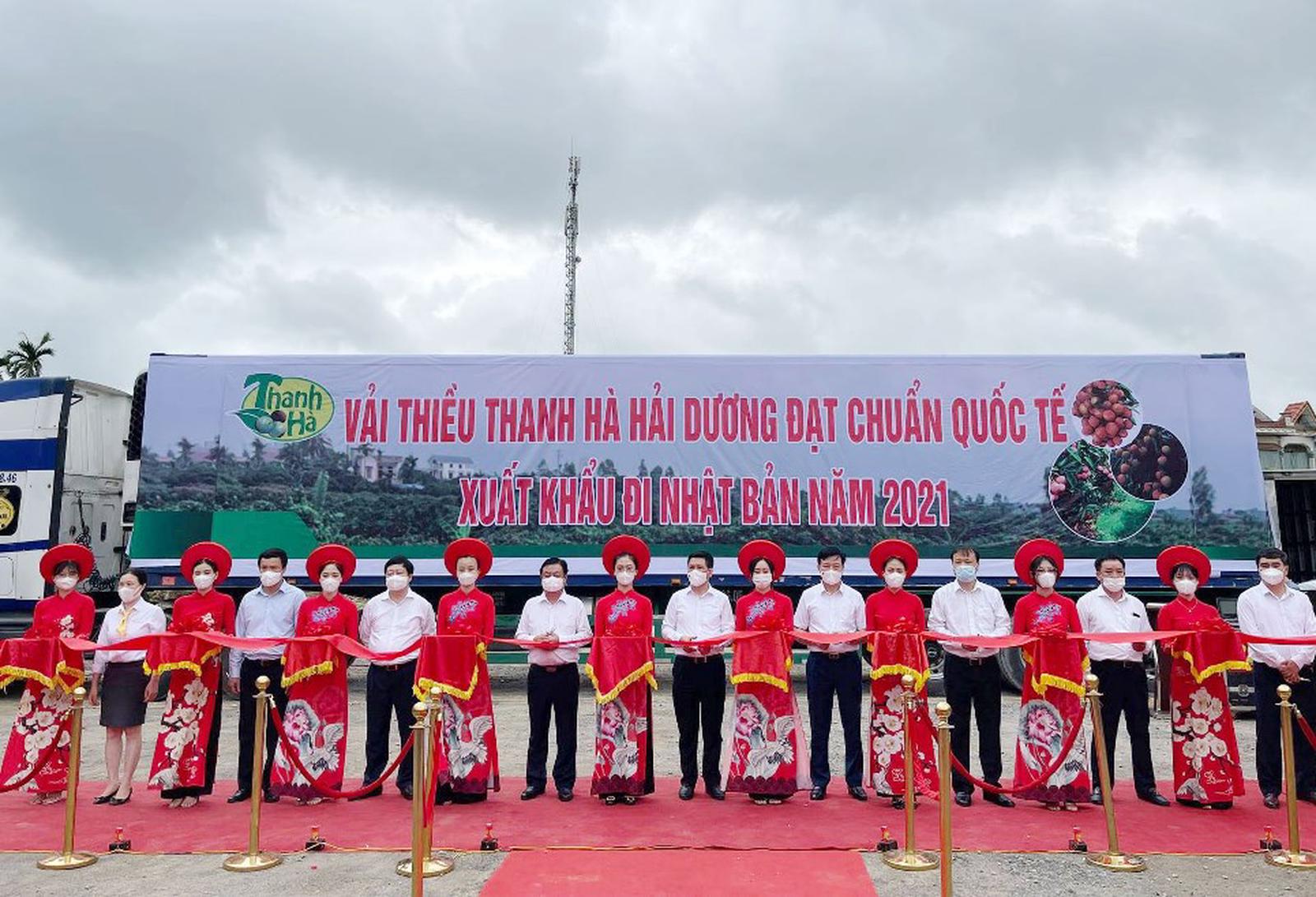 (Thanh tra) - Ngày 18/5, tại Hải Dương, lãnh đạo Bộ Công Thương, Bộ Nông nghiệp và Phát triển nông thôn (NN&PTNT) cùng lãnh đạo tỉnh Hải Dương đã dự lễ cắt băng chính thức mở vườn đưa vải thiều Thanh Hà, đặc sản nổi tiếng của tỉnh Hải Dương, xuất khẩu đi Nhật Bản, Mỹ, Singapore... đồng thời tổ chức hội nghị kết nối, xúc tiến tiêu thụ vải thiều Thanh Hà và nông sản tiêu biểu tỉnh Hải Dương năm 2021.