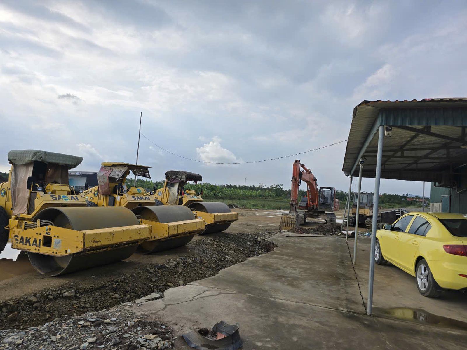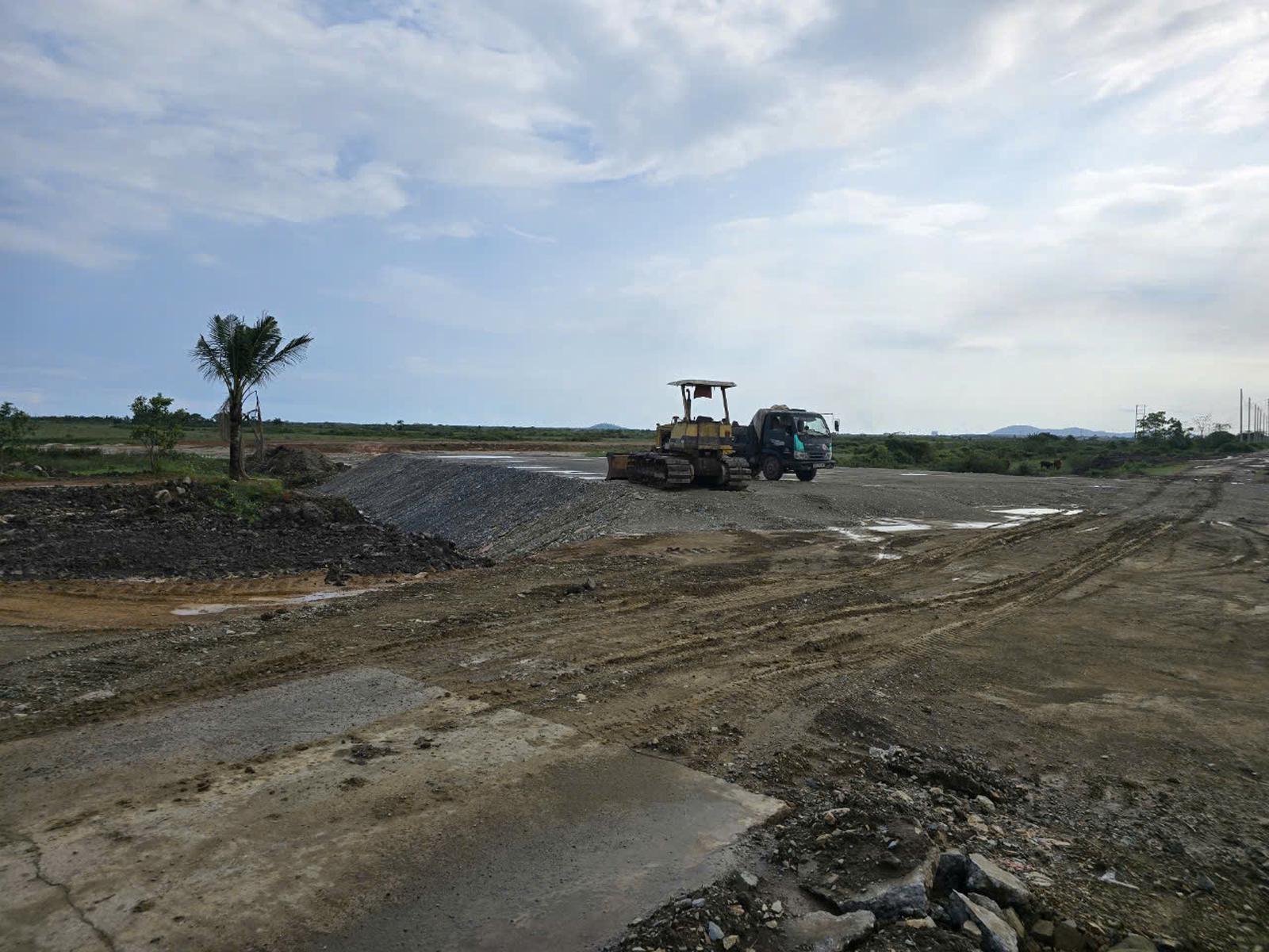 Nhà thầu đắp chiếu máy móc vì dự án chưa bàn giao mặt bằng sạch ở huyện Nga Sơn. Ảnh: Văn Thanh