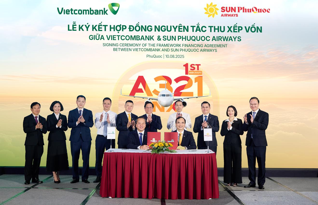 Lễ ký kết Hợp đồng nguyên tắc thu xếp vốn giữa Sun PhuQuoc Airways và Vietcombank diễn ra đánh dấu bước phát triển quan trọng trong quan hệ hợp tác giữa hai bên. Theo đó Vietcombank sẽ là ngân hàng đầu mối thu xếp gói tín dụng cho kế hoạch đầu tư đội bay thuộc sở hữu của Sun PhuQuoc Airways, gồm 10 tàu bay thế hệ mới Airbus A320/321NEO.
