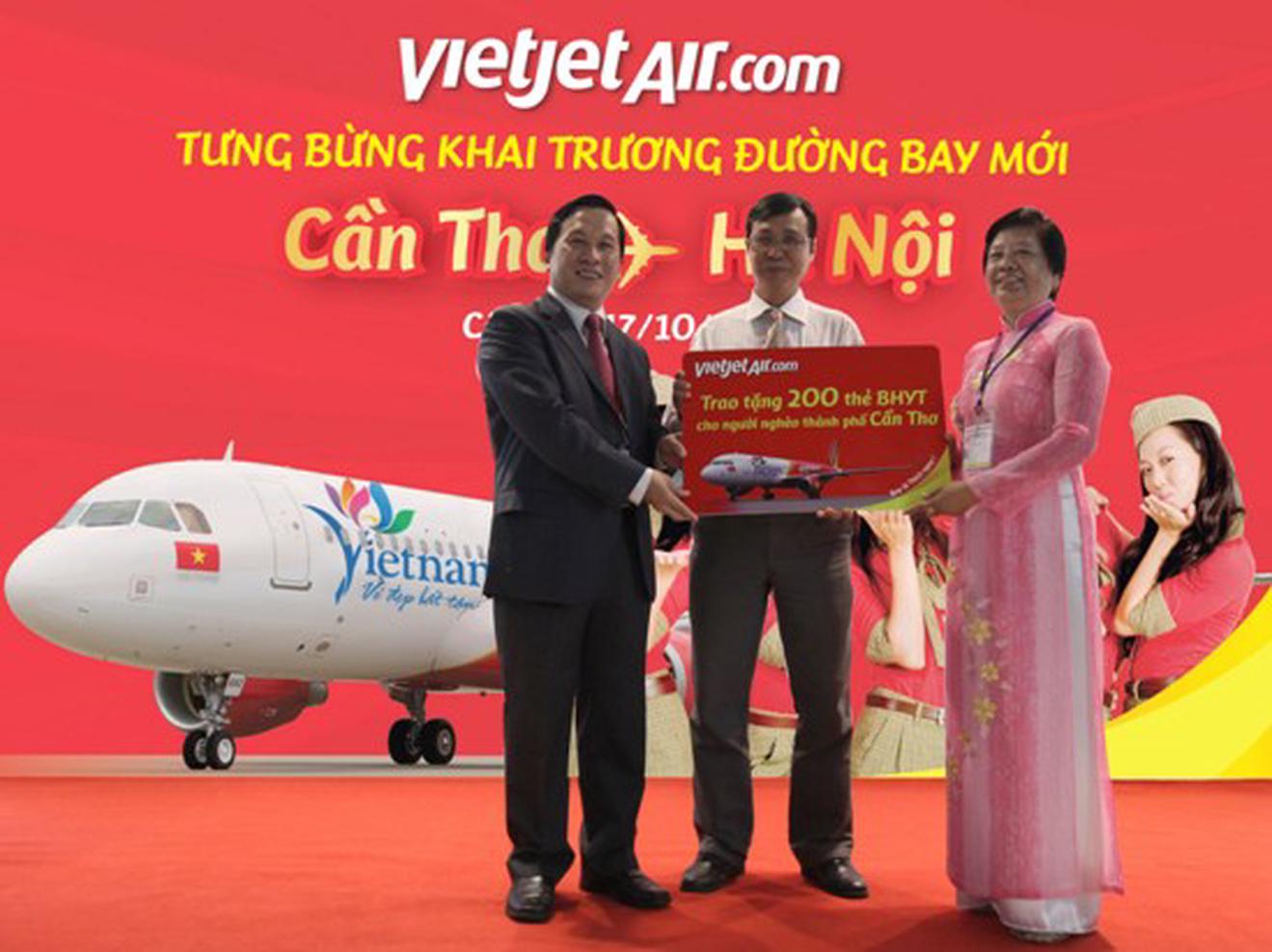 (Thanh tra) – Đây là đường bay thứ 2 của Hãng đến Cần Thơ cùng với đường Đà Nẵng – Cần Thơ. Nhân sự kiện này, Vietjet cũng trao tặng 200 thẻ Bảo hiểm Y tế cho người nghèo Hà Nội và 200 thẻ Bảo hiểm Y tế cho người nghèo Cần Thơ.