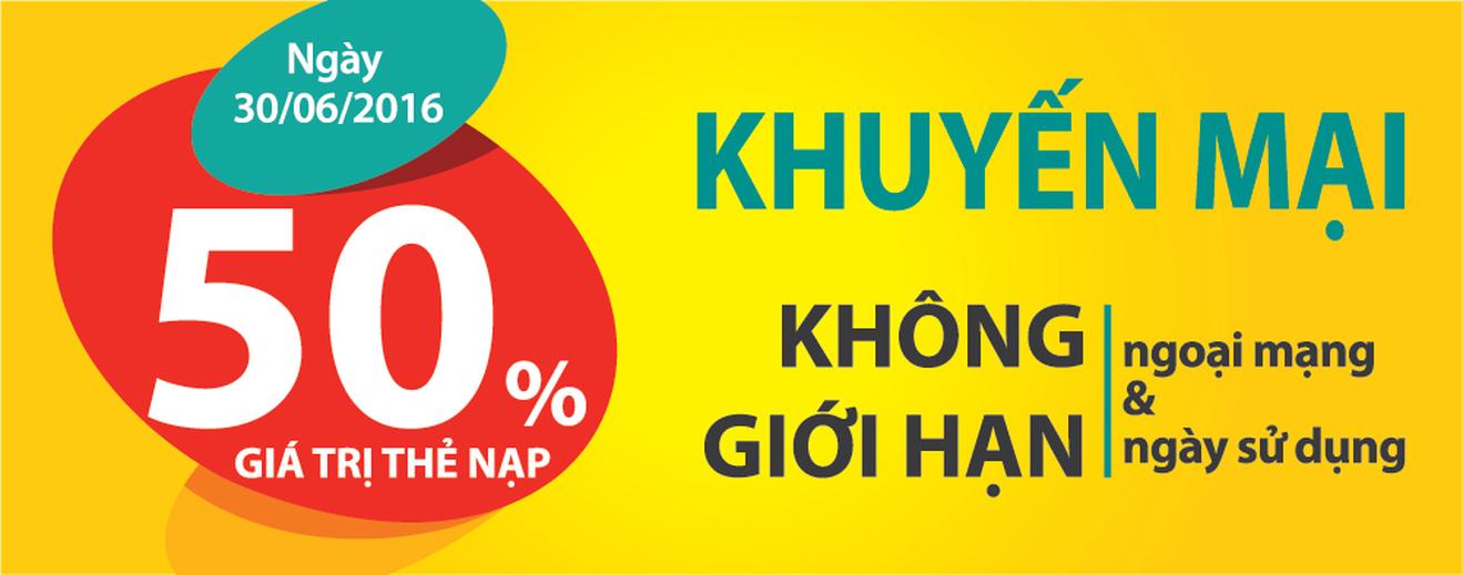 Theo đó, thuê bao Viettel khi nạp thẻ bất kỳ mệnh giá nào từ thời điểm 00h:00:00 đến 23h:59:59 ngày 30/06/2016đều được cộng thêm 50% giá trị thẻ nạp vào tài khoản khuyến mại với thời hạn sử dụng mãi mãi và không hạn chế số lượng thẻ nạp. Chương trình không áp dụng cho thuê bao Dcom trả trước, gói cước trả trước Sea+, Tourist.