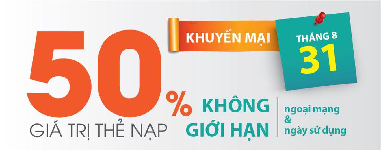 (Thanh tra) - Chuẩn bị cho kỳ nghỉ lễ Quốc khánh 2/9 Viettel triển khai Chương trình Khuyến mãi tặng 50% giá trị thẻ nạp dành cho các khách hàng sử dụng dịch vụ di động, Homephone trả trước (trừ thuê bao gói Sea+, Tourist). Chương trình được bắt đầu từ 00h:00:00 đến 23h:59:59 ngày 31/08/2016, trong khoảng thời gian này, khách hàng có thể nạp thẻ vào tài khoản điện thoại để hưởng ưu đãi mà không hạn chế mệnh giá và số lần nạp thẻ.