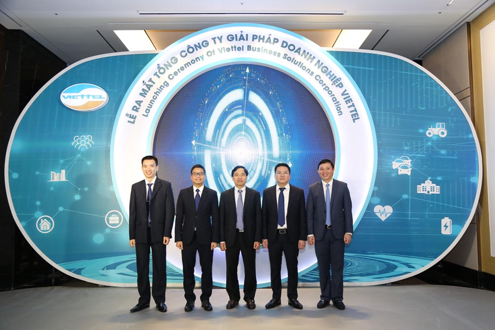 Ban Lãnh đạo Tổng Cty Giải pháp doanh nghiệp Viettel chụp ảnh lưu niệm tại Lễ ra mắt Tổng Cty. Ảnh: LP