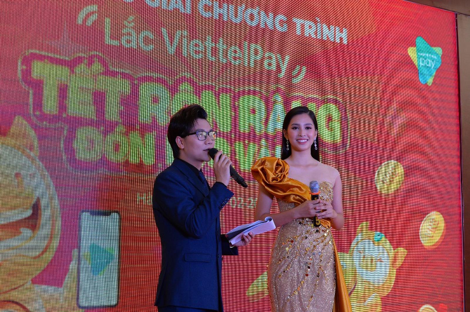 Lễ trao giải đặc biệt của chương trình Lắc ViettelPay- Tết Rộn Ràng-Đón Lộc Vàng có sự hiện diện của Hoa hậu Trần Tiểu Vy với vai trò đại diện thương hiệu ViettelPay. Ảnh: PV