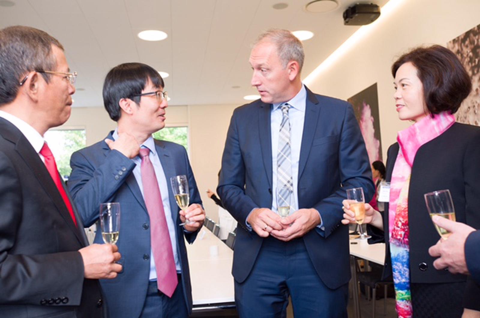 Lãnh đạo Vinamilk cùng ông Nguyễn Trường Thanh - Đại sứ đặc mệnh toàn quyền Việt Nam tại Vương quốc Đan Mạch đang trao đổi tại lễ ký kết. Ảnh: Hoàng Yến