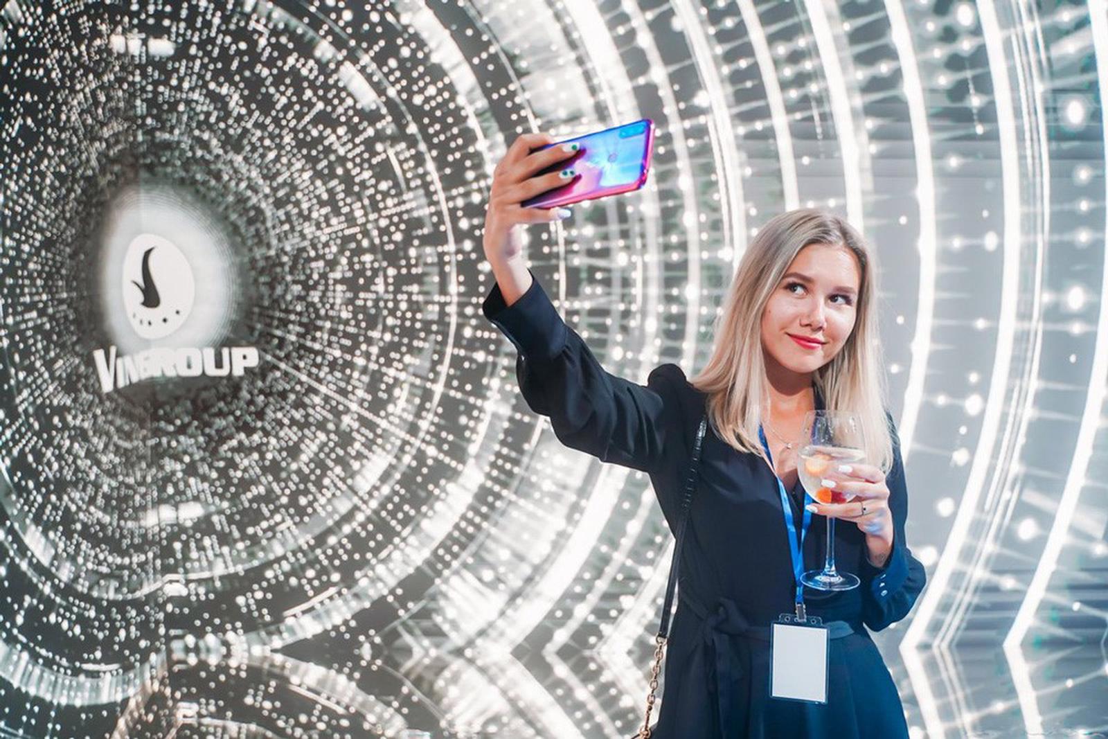 Thiếu nữ Nga thích thú selfie bằng điện thoại Vsmart