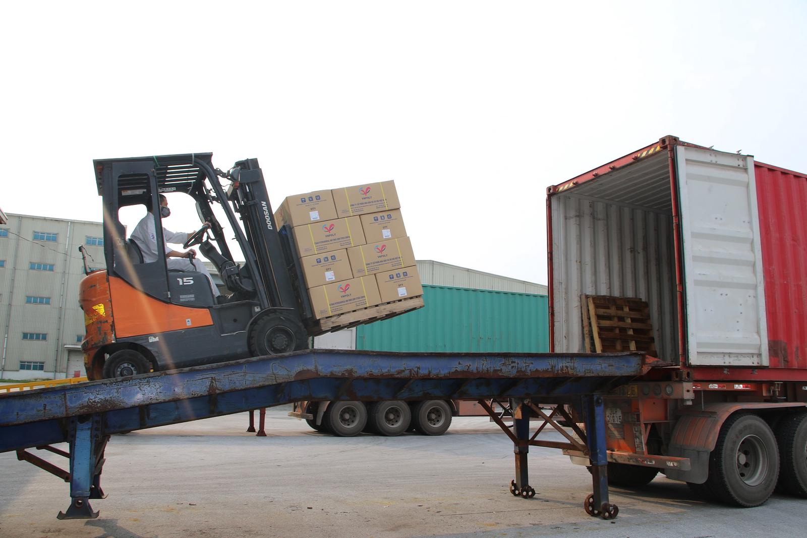 VNPOLY chuyển hàng lên container để vận chuyển đến khách hàng