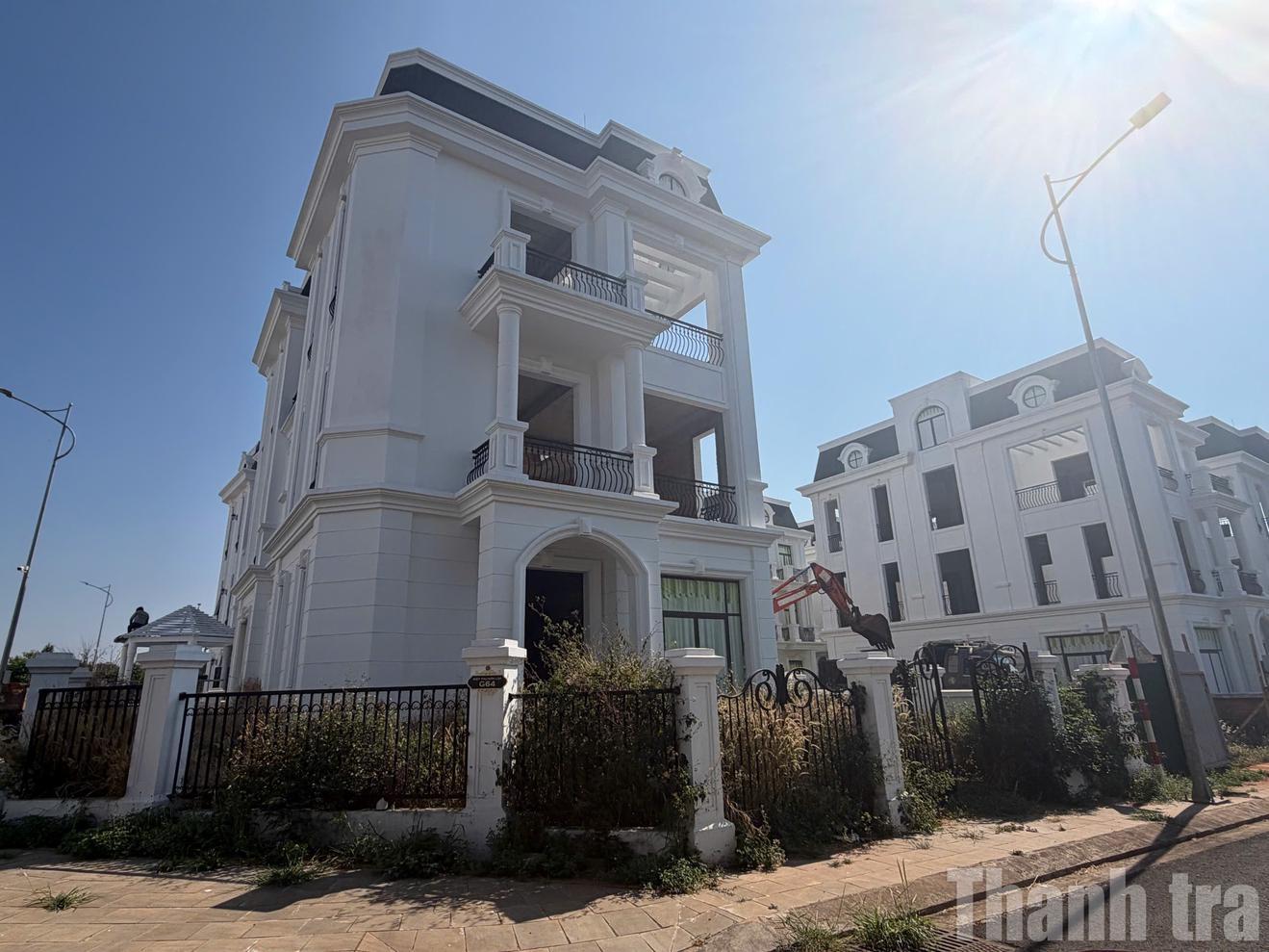 Hàng loạt biệt thư tại dự án Khu đô thị EcoCity Premia (Km7, phường Tân An, tỉnh Đắk Lắk) bị bỏ hoang, cỏ dại bủa vây, gây lãng phí nguồn lực đất đai. Ảnh: NG