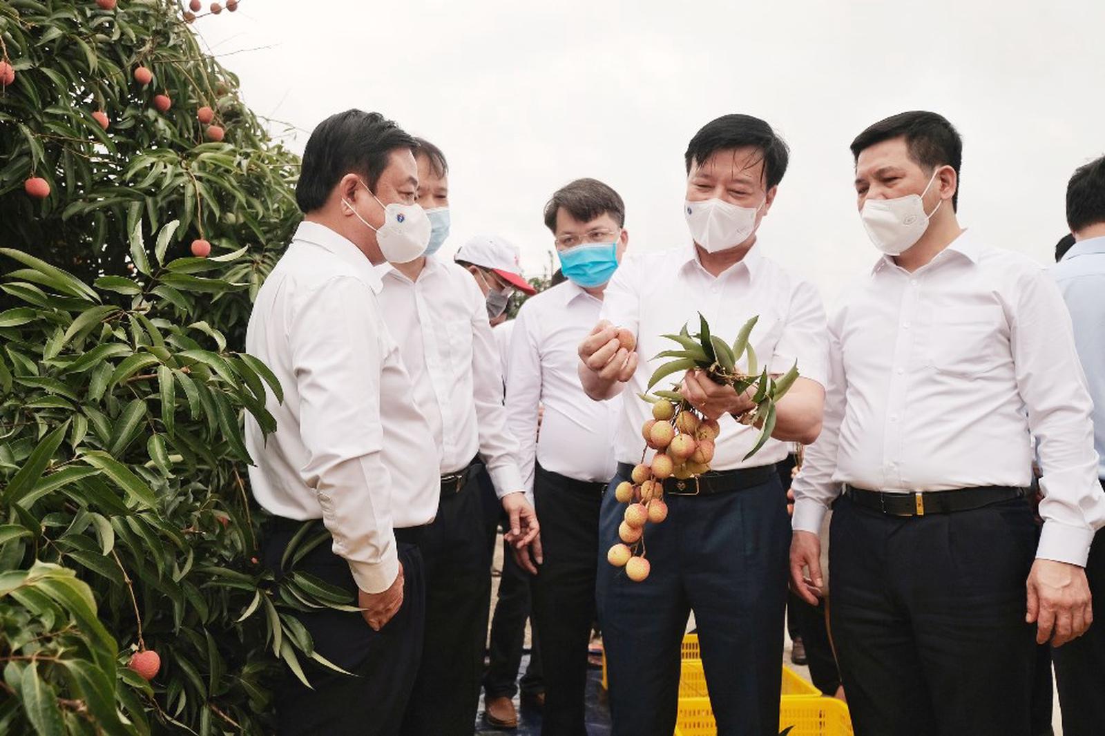 Bộ trưởng Bộ Nông nghiệp và Phát triển nông thôn Lê Minh Hoan thăm vườn vải thiều Thanh Hà (Hải Dương). Ảnh: AT