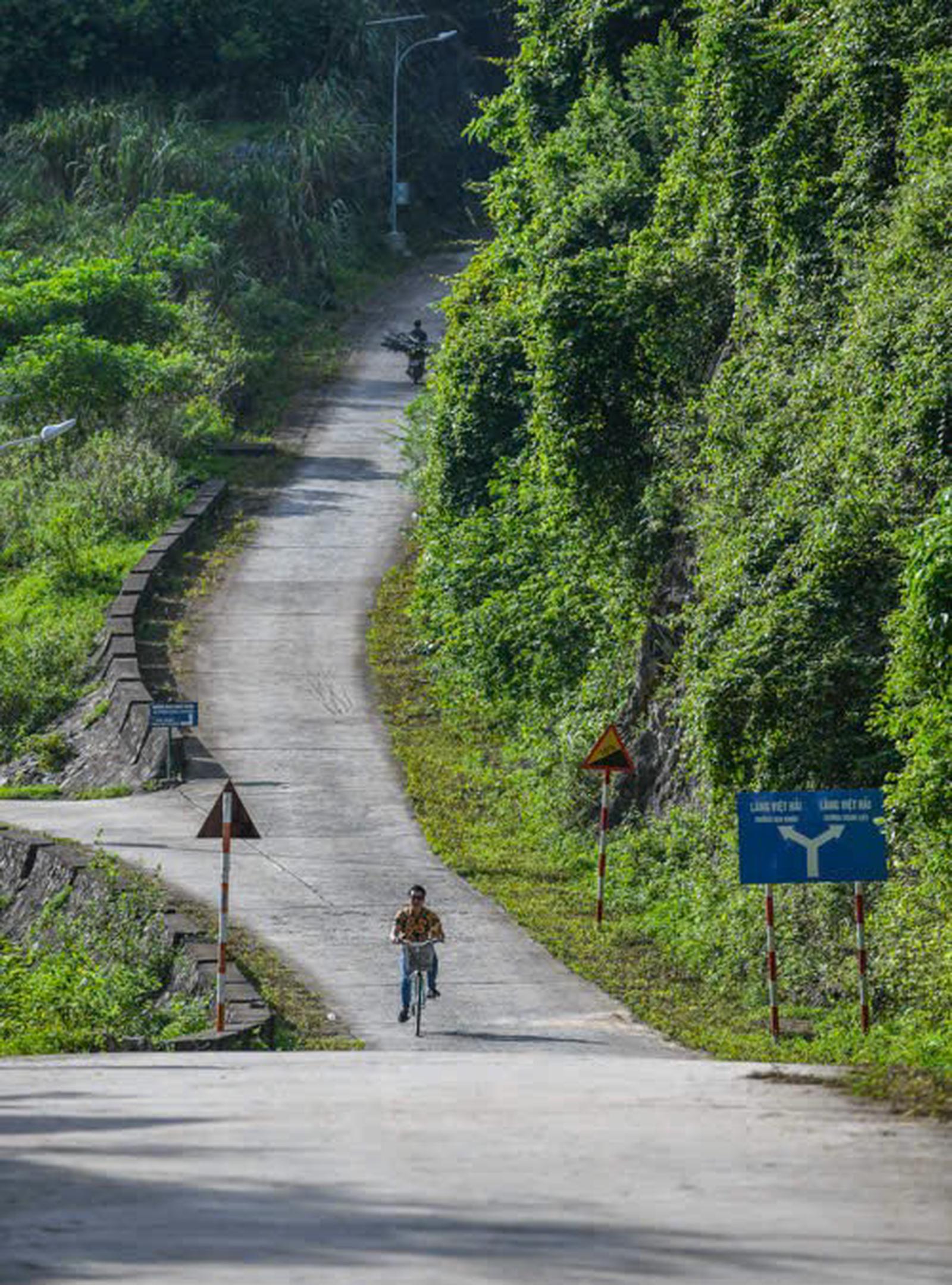 Đạp xe ở làng Việt Hải năm trong vườn quốc gia Cát Bà Hải Phòng. Ảnh: KD