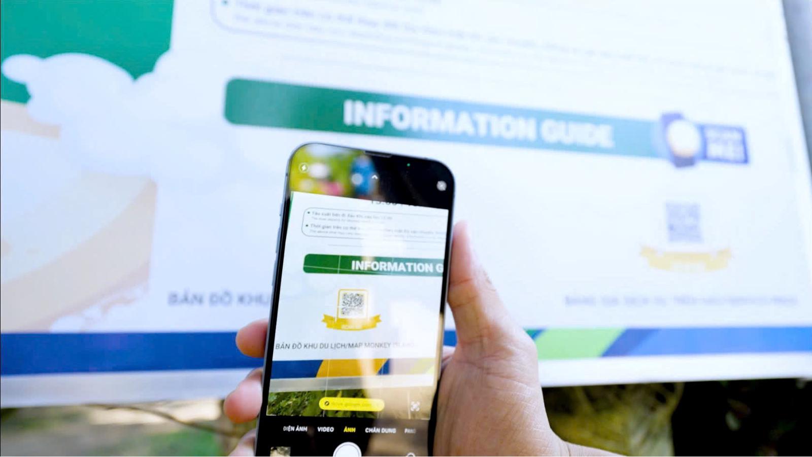 Du khách có thể quét mã tìm hiểu về tên, đặc điểm sinh trưởng của cây. Ảnh: Minh Trâm