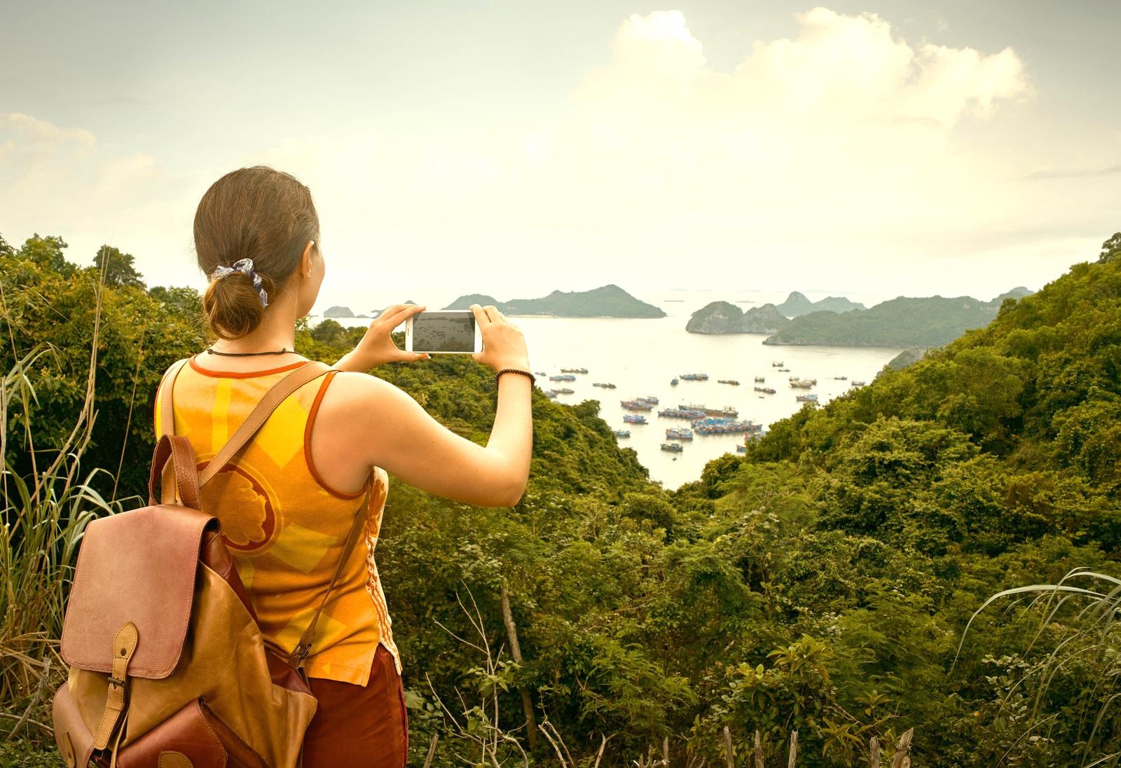 Du khách ngắm Đảo Cát Bà nhìn từ trên cao