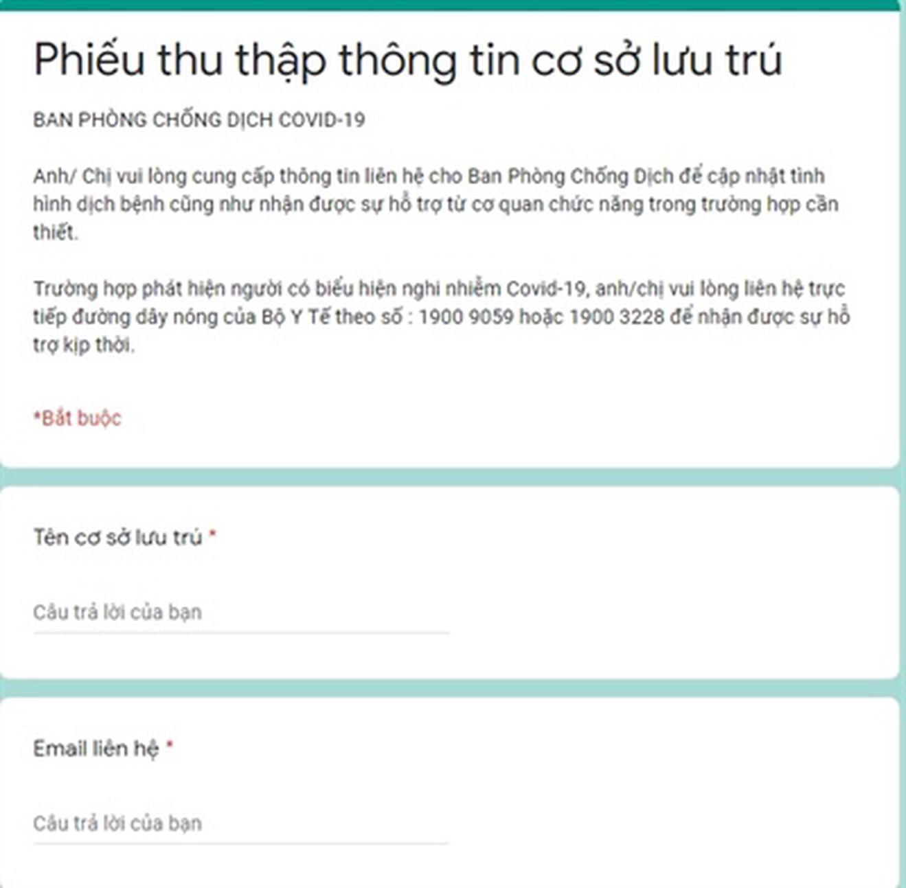 Trước thực trạng đó, các doanh nghiệp công nghệ thông tin đã xây dựng ứng dụng (app) Vietnam Health Declaration với mục tiêu huy động sức mạnh cộng đồng thu thập thông tin (địa chỉ, số điện thoại, email) các cơ sở lưu trú và dịch vụ du lịch trên toàn quốc (theo Google Forms).