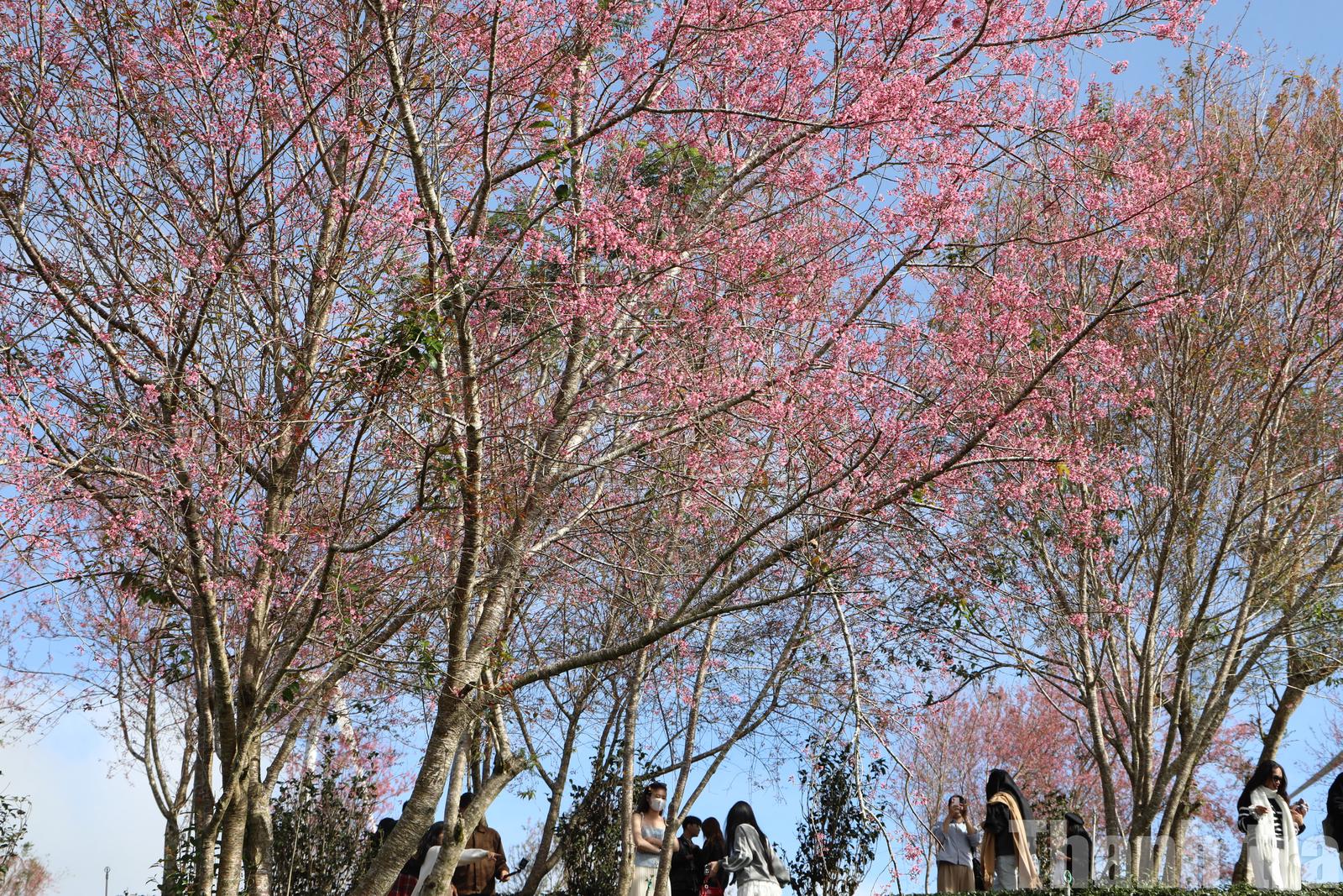 Những gốc hoa mai anh đào tại đồi chè Cầu Đất bắt đầu trút lá vào tháng 10/2024 và nở rộ vào đầu tháng 1/2025.