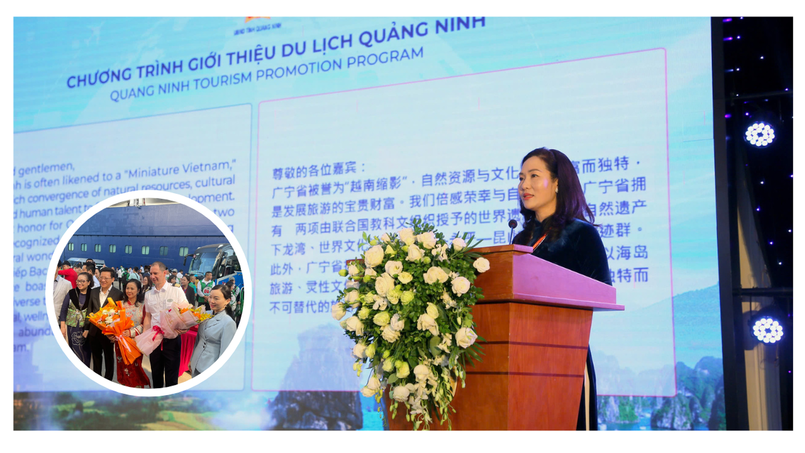 Bà Nguyễn Thị Hạnh, Phó Chủ tịch UBND tỉnh Quảng Ninh, giới thiệu tiềm năng, sản phẩm và định hướng phát triển du lịch tới các đối tác trong chương trình xúc tiến du lịch năm 2025. Ảnh: Thanh Tùng