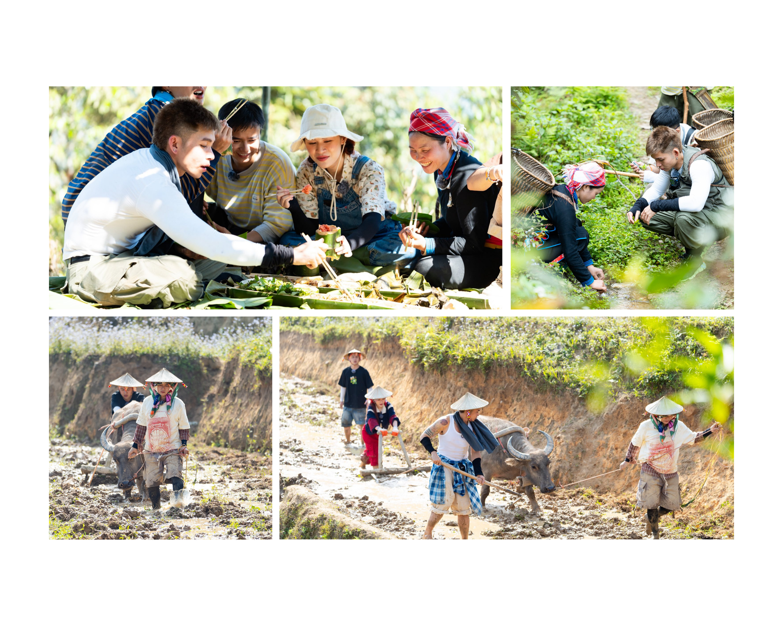 Các nghệ sĩ trực tiếp trải nghiệm cuộc sống của người dân vùng cao. Ảnh: NSXCC/ Đồ họa: CB