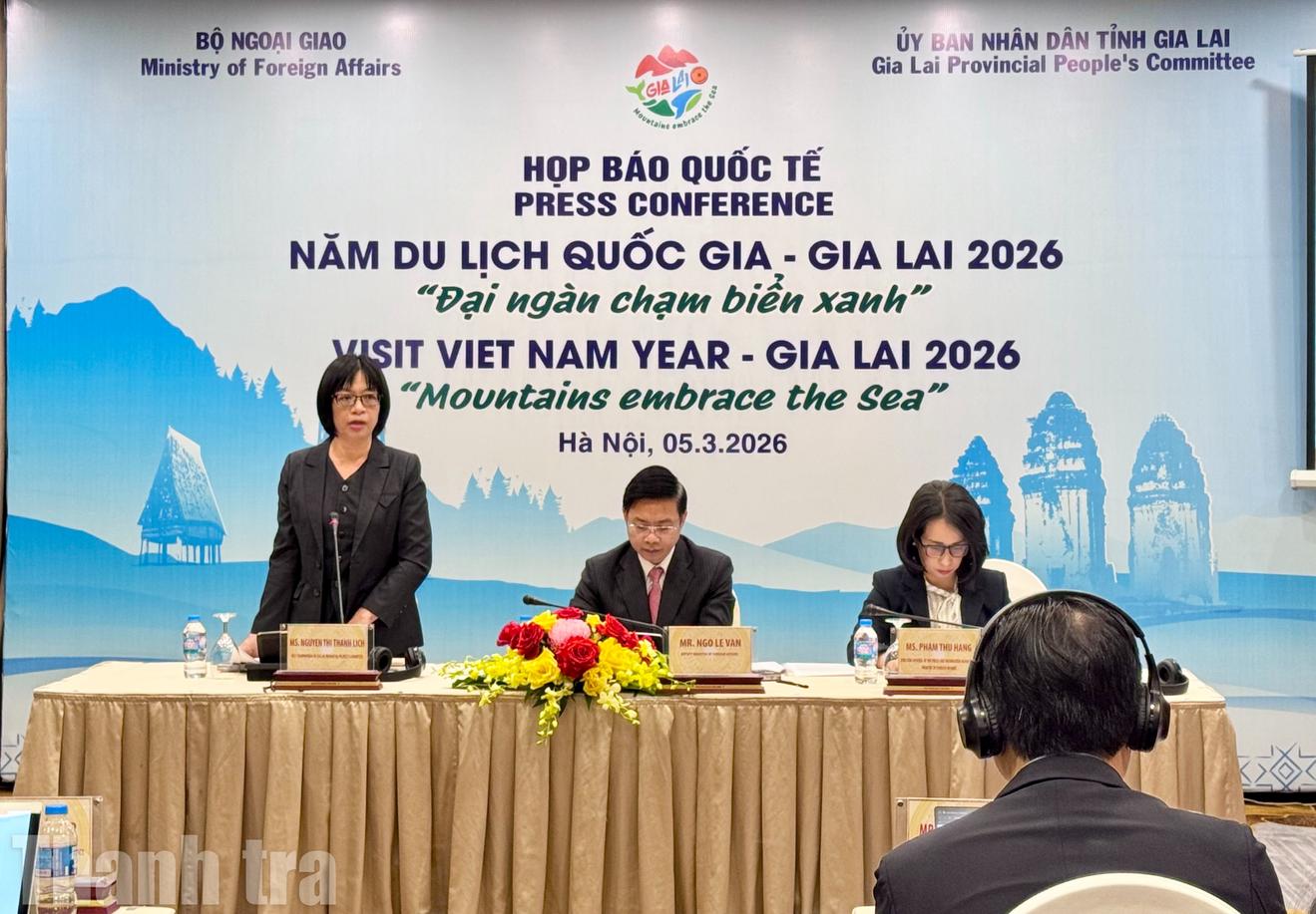 Chiều 5/3, Bộ Ngoại giao phối hợp với UBND tỉnh Gia Lai tổ chức họp báo quốc tế giới thiệu Năm Du lịch quốc gia - Gia Lai 2026 với chủ đề “Gia Lai - Đại ngàn chạm biển xanh”.