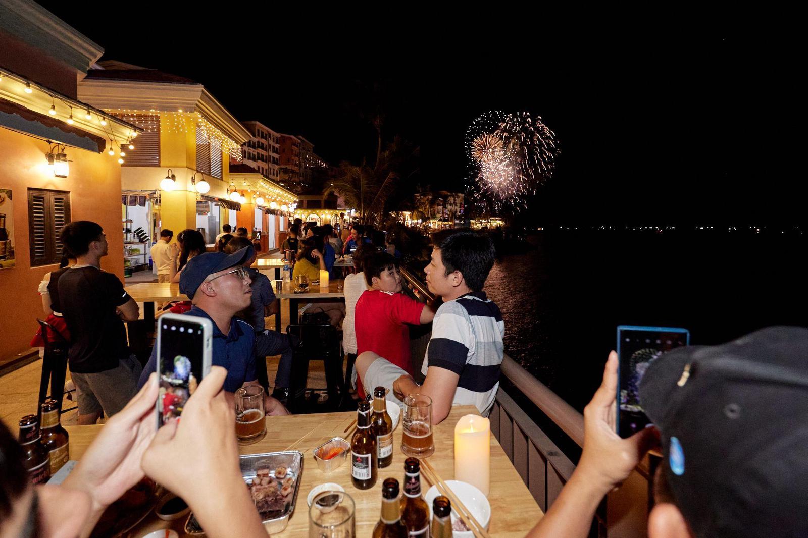 Bên cạnh chợ đêm, Thị trấn Hoàng Hôn còn sở hữu dãy nhà hàng bên biển, nơi du khách có thể dễ dàng ngắm nhìn những màn trình diễn pháo hoa lộng lẫy như Runam, Loop Bar, Draft Beer…