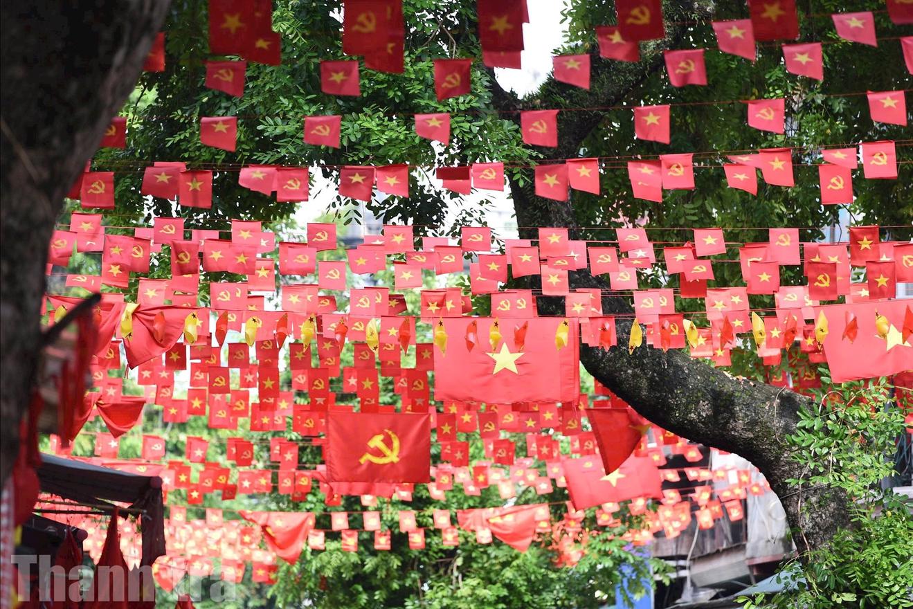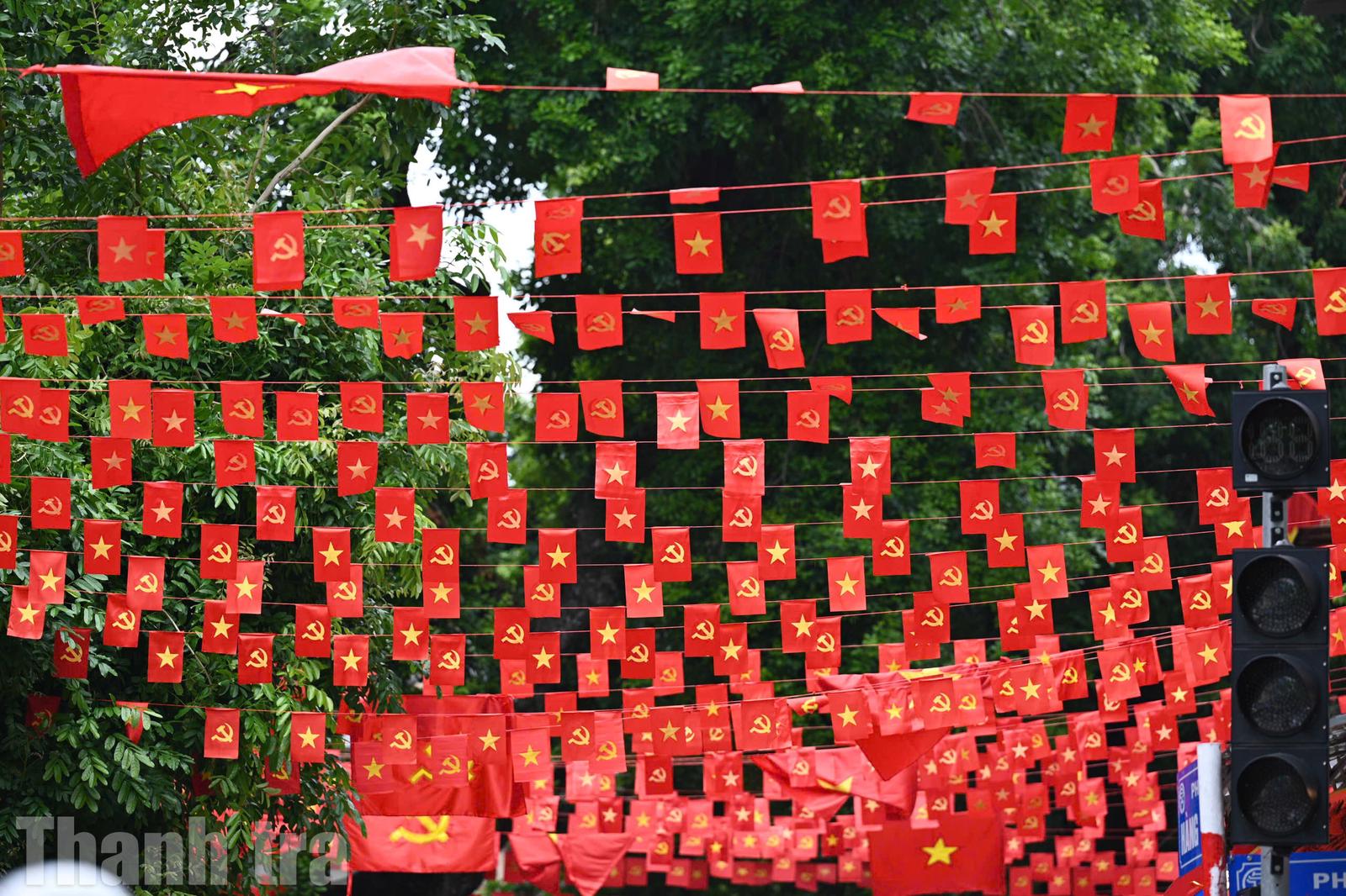Đường phố Hà Nội rực rỡ cờ hoa. Ảnh: HH