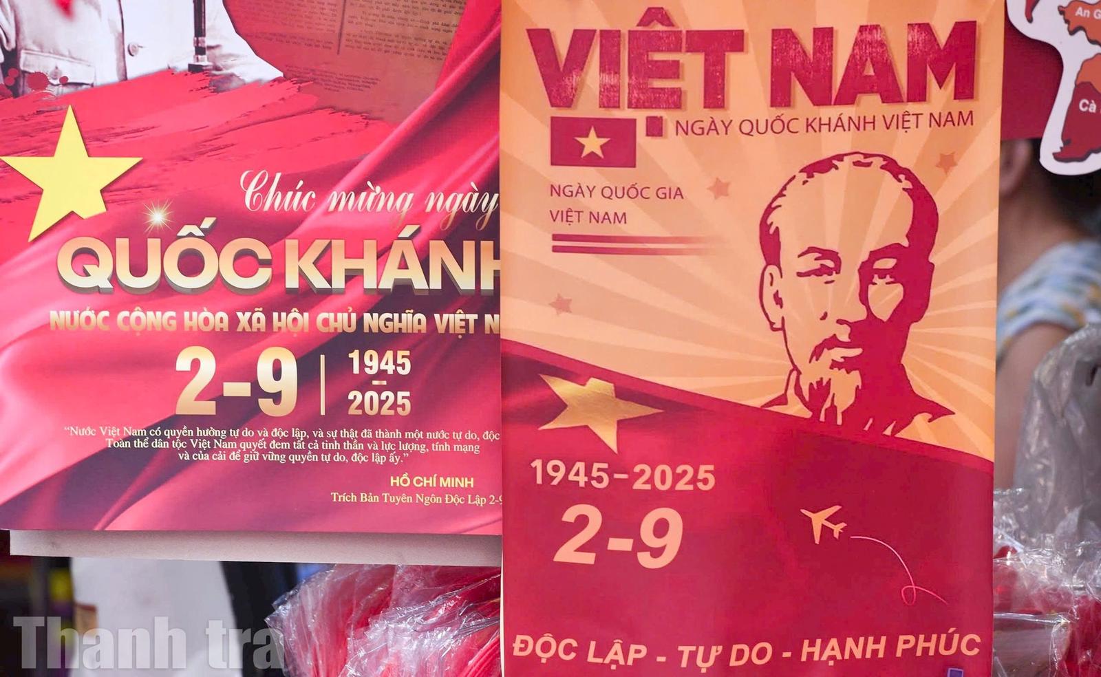 "Mọi năm vào dịp này các cửa hàng tập trung bày bán đồ Trung Thu, nhưng năm nay kỷ niệm 80 năm ngày Quốc khánh, thu hút đông đảo khách du lịch đến Thủ đô, nên các cửa hàng tập trung bày bán những sản phẩm mang đậm tinh thần yêu nước", một tiểu thương trên phố Hàng Mã cho biết.