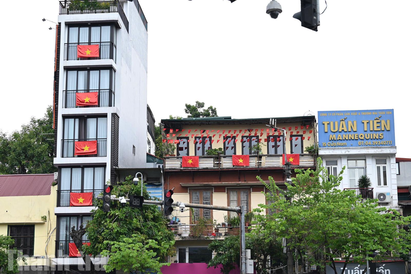Không chỉ các cơ quan, công sở, mà từng hộ gia đình, cửa hàng cũng chủ động trang hoàng cờ hoa rực rỡ. Ảnh: HH